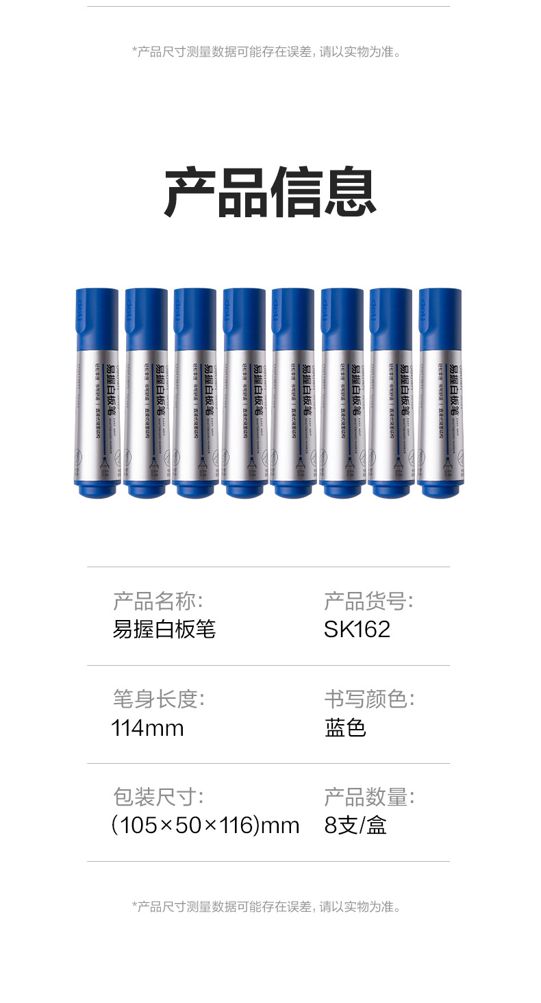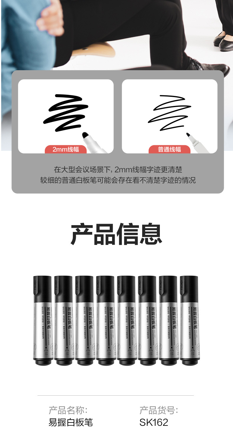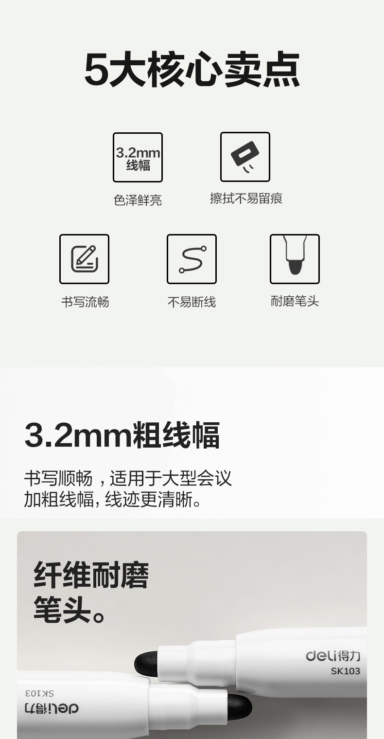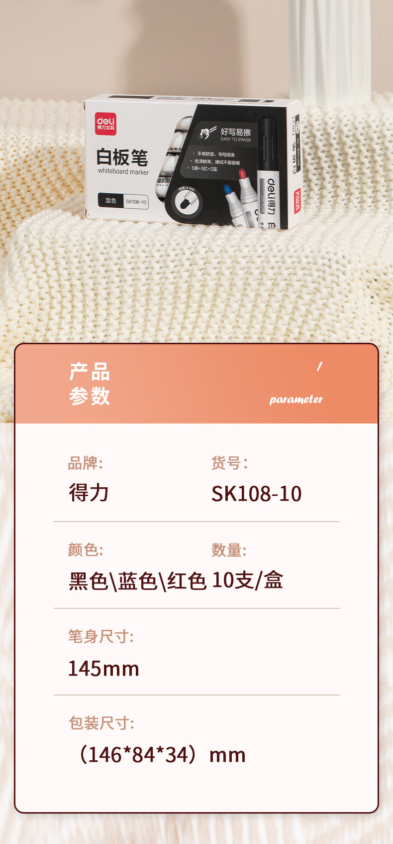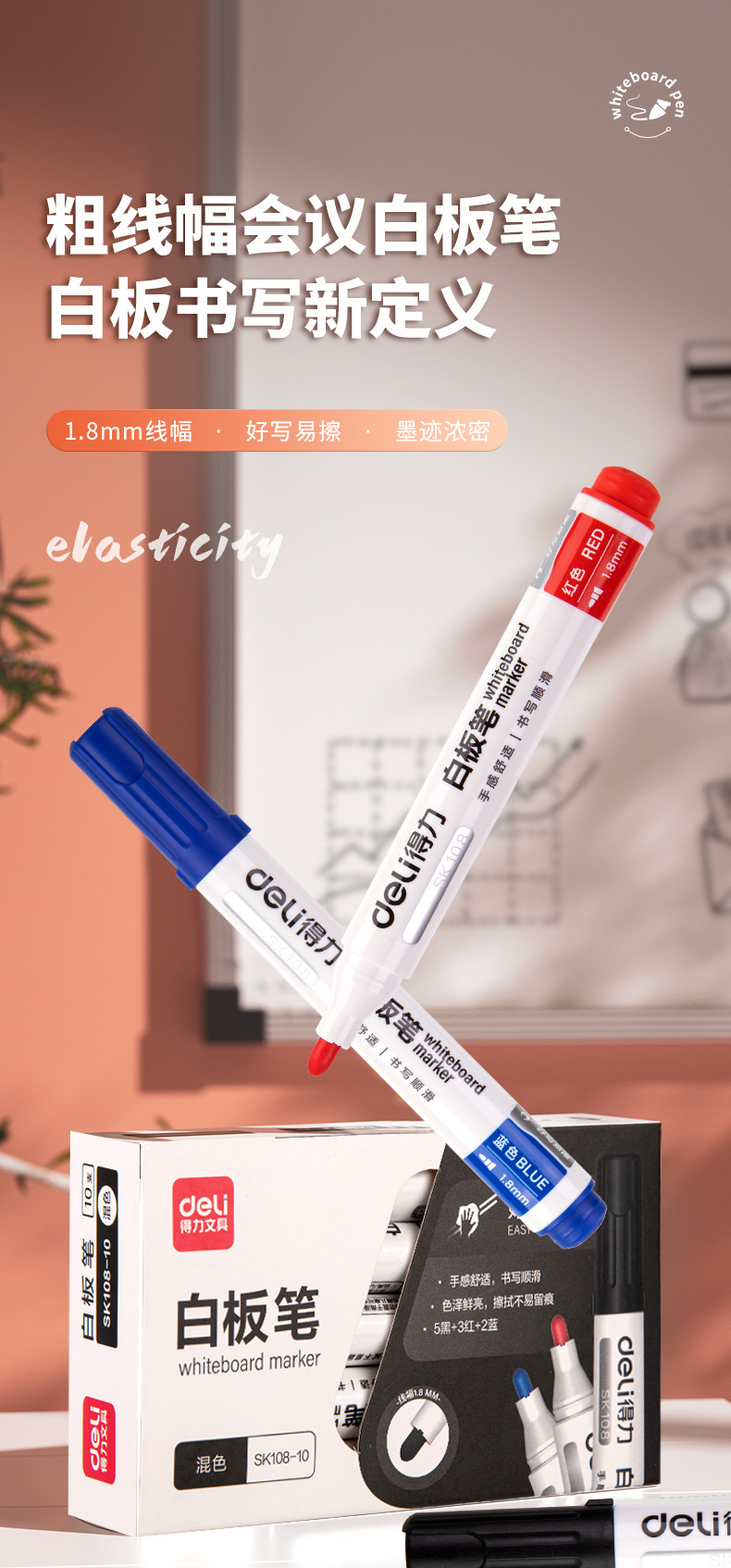 得力SK108白板笔教学演讲培训用笔玻璃板教学笔易擦拭黑蓝