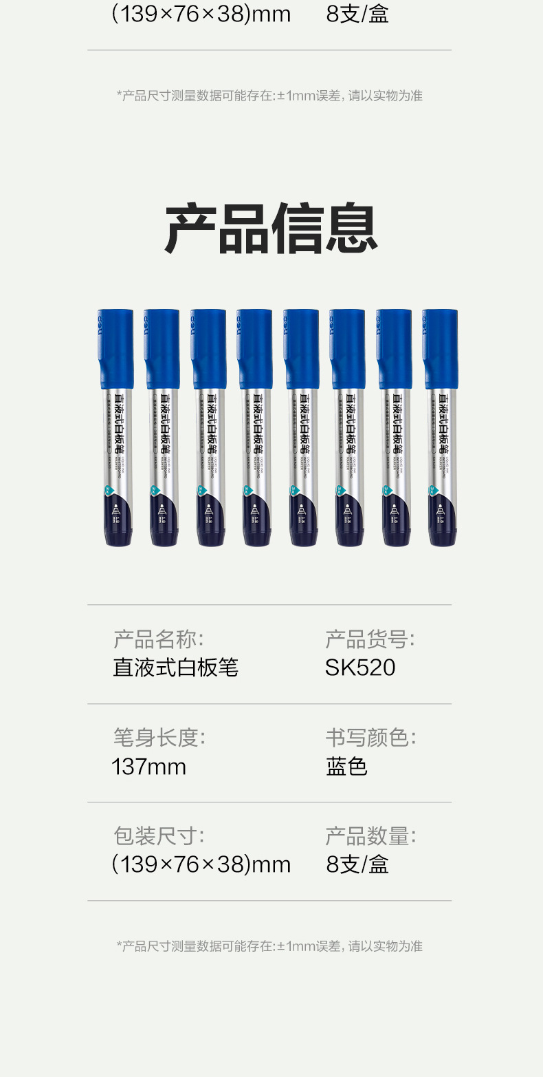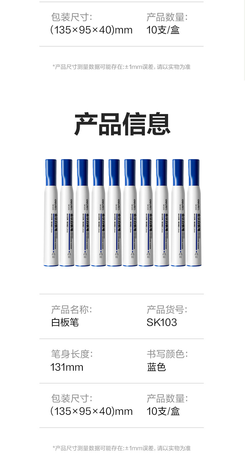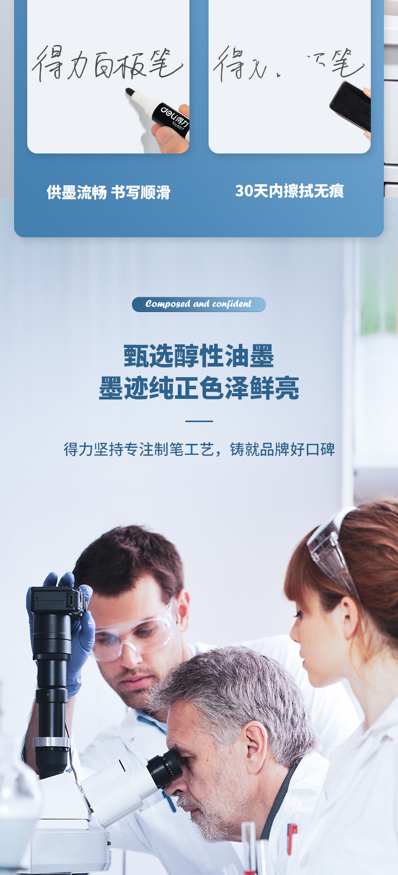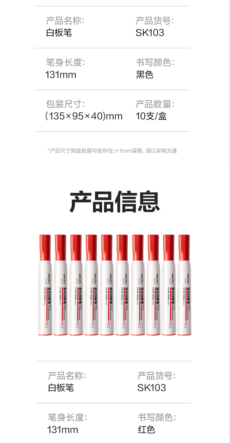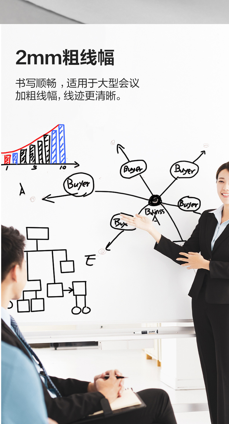 得力SK108白板笔教学演讲培训用笔玻璃板教学笔易擦拭黑蓝