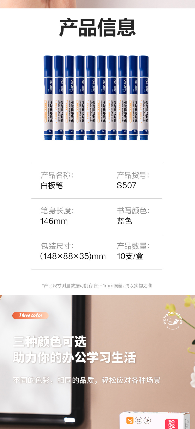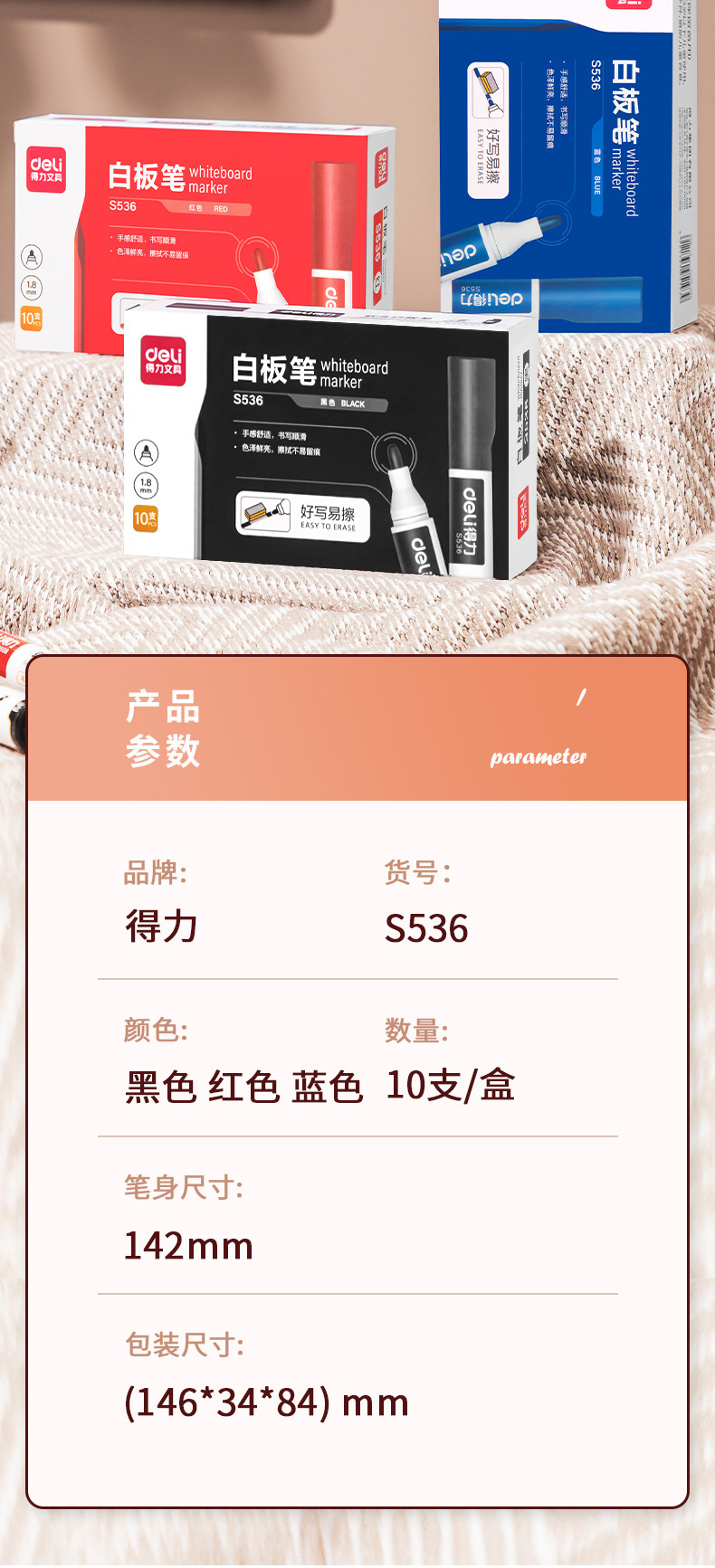 デリ 6817 ホワイトボードペン物流ペン赤青黒ホワイトボードペン消去可能なペン事務用品卸売
