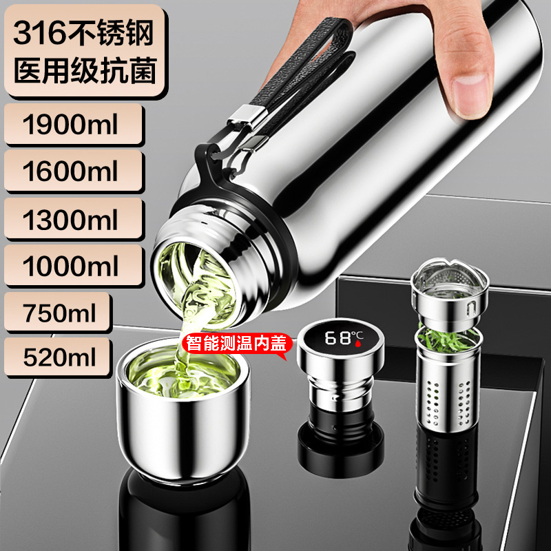 全鋼316保温カップ ステンレス製 メンズ ポータブル 超大容量 水筒 茶葉入れ 大型カップ 304 温度表示