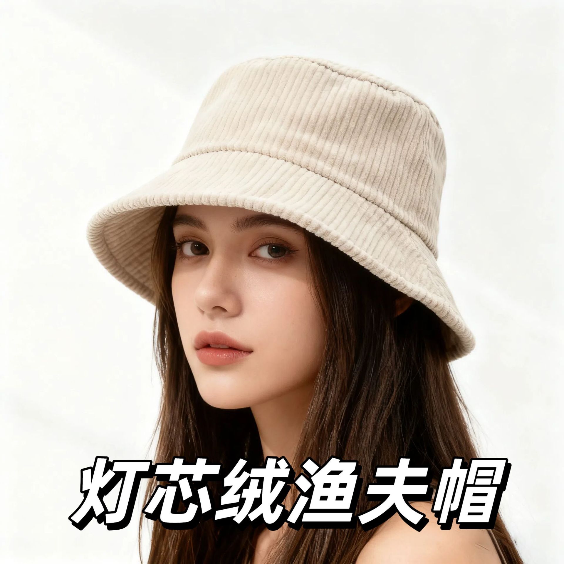 コーデュロイ漁夫帽女性ネット赤ファッション秋冬保温帽子高品質の顔を見せています。