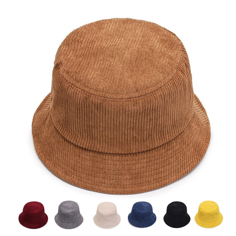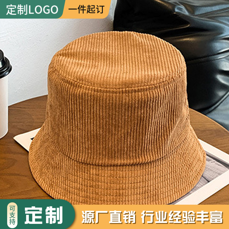 休闲灯芯绒渔夫帽子刺绣logo女秋冬小批量可折叠大檐遮阳盆帽印字