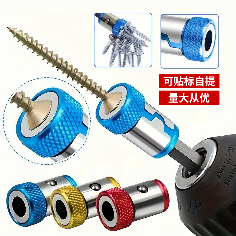 高硬度消磁强磁铝合金加磁器吸附6.35六角柄批头起子头电钻磁圈