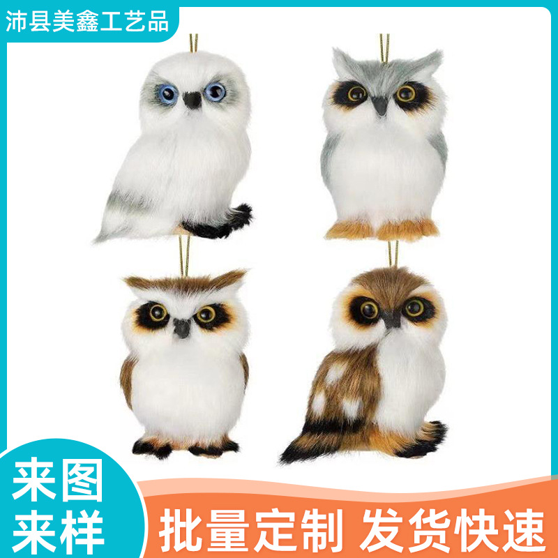 模擬毛皮動物模擬フクロウコンビネーションペンダントデスクトップウィンドウ装飾品クリスマスペンダント装飾
