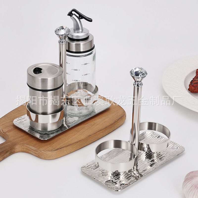亚马逊热卖不锈钢调味瓶收纳托盘商用餐厅桌面玻璃醋瓶调料罐提盘
