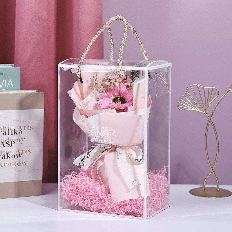 PVC ポータブルギフトボックス花束透明包装箱中国のバレンタインデーギフトボックス PVC 人形ギフト包装透明ボックス卸売