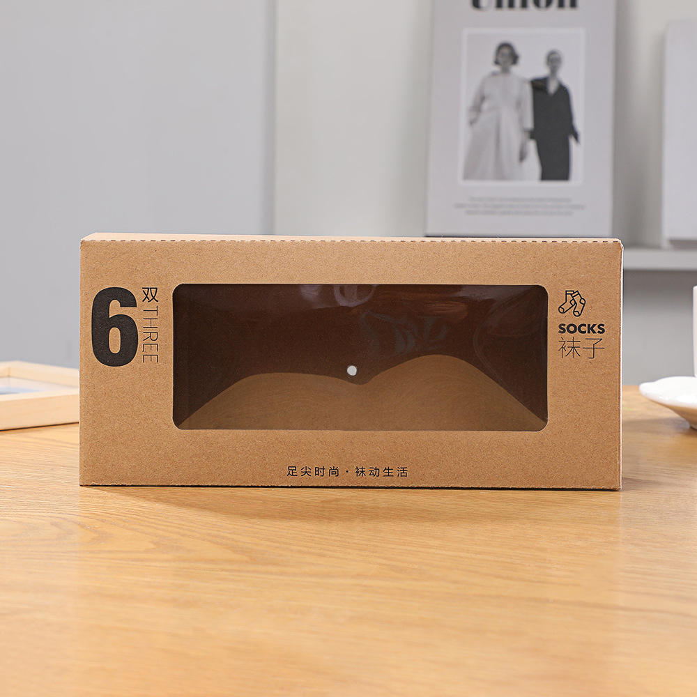 メーカー窓開け牛革紙箱高級靴下下着包装耳掛け式小プレゼント包装箱卸売り