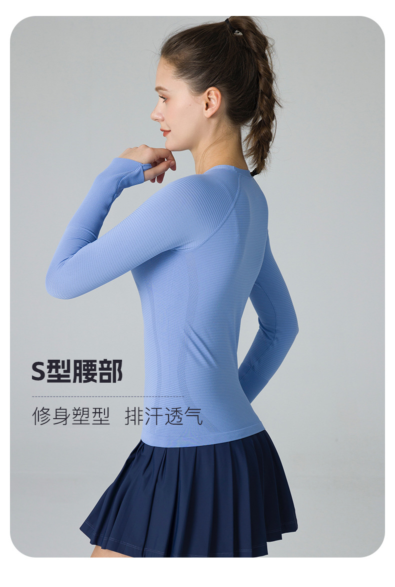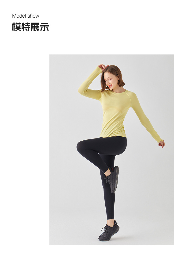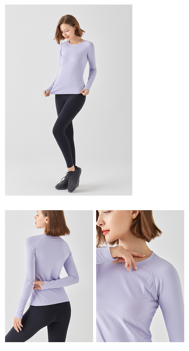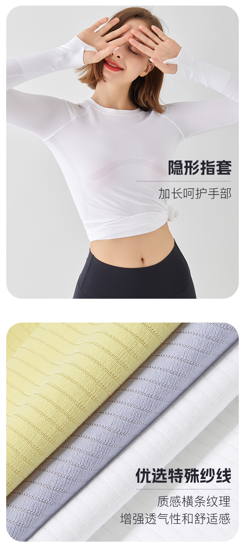 新型二色糸シームレスファッション速乾通気性が痩せているヨガ屋外ランニング高弾運動長袖tシャツ