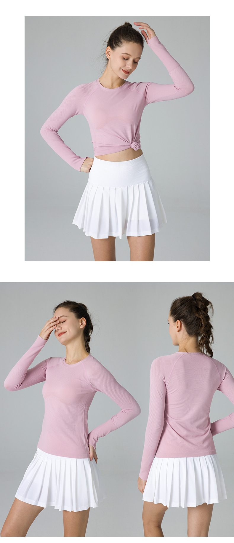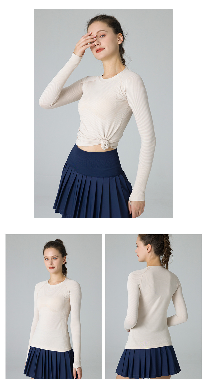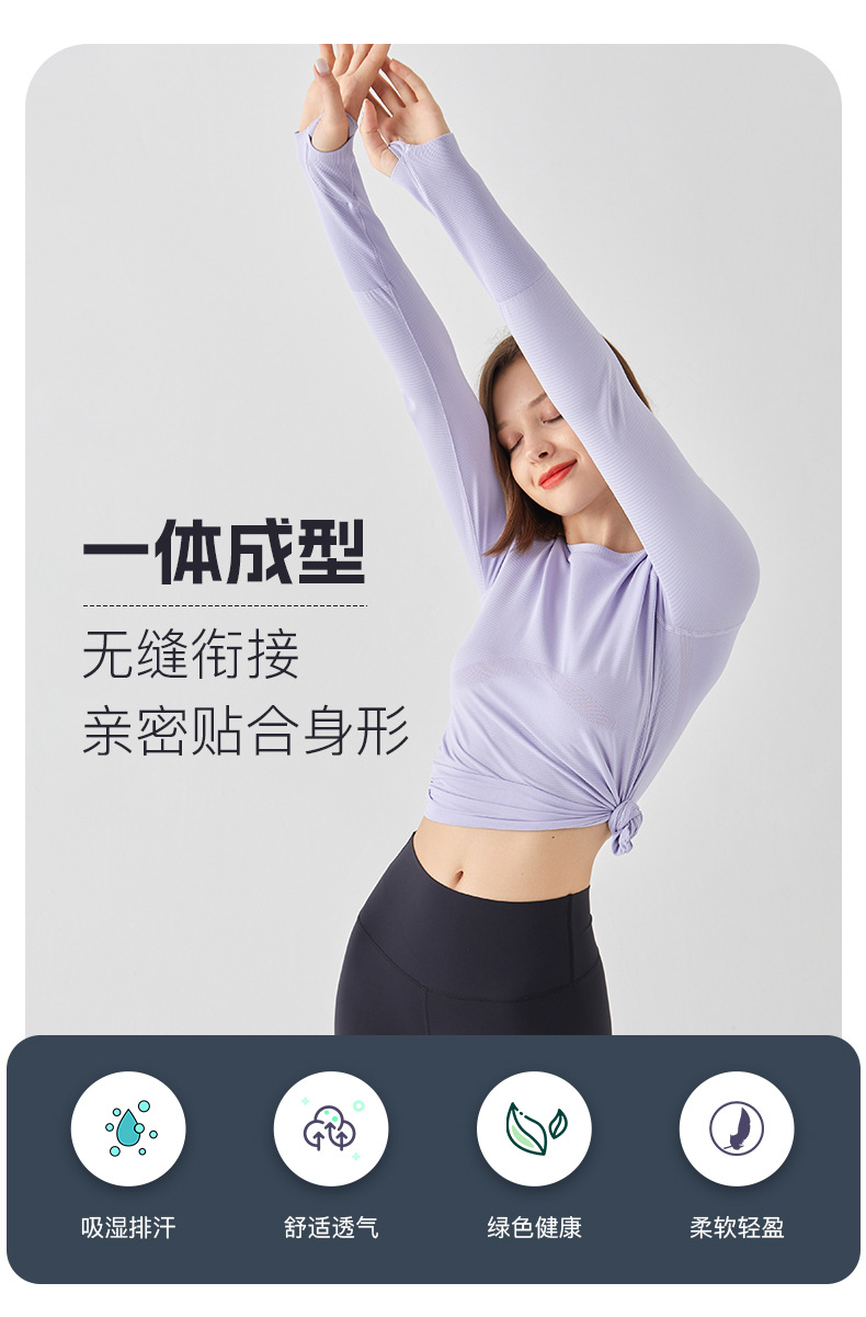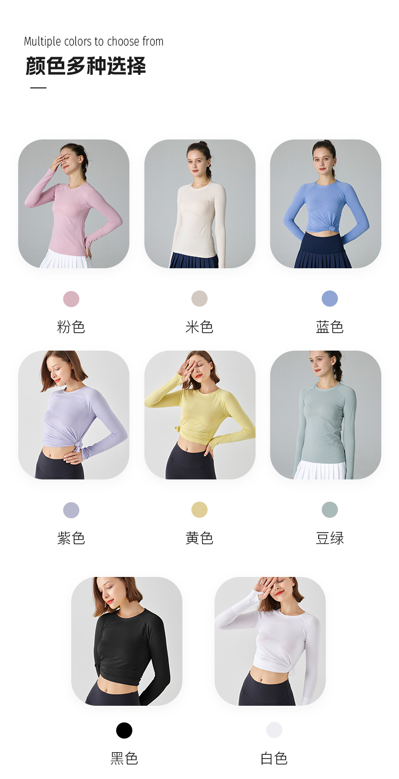 新型二色糸シームレスファッション速乾通気性が痩せているヨガ屋外ランニング高弾運動長袖tシャツ