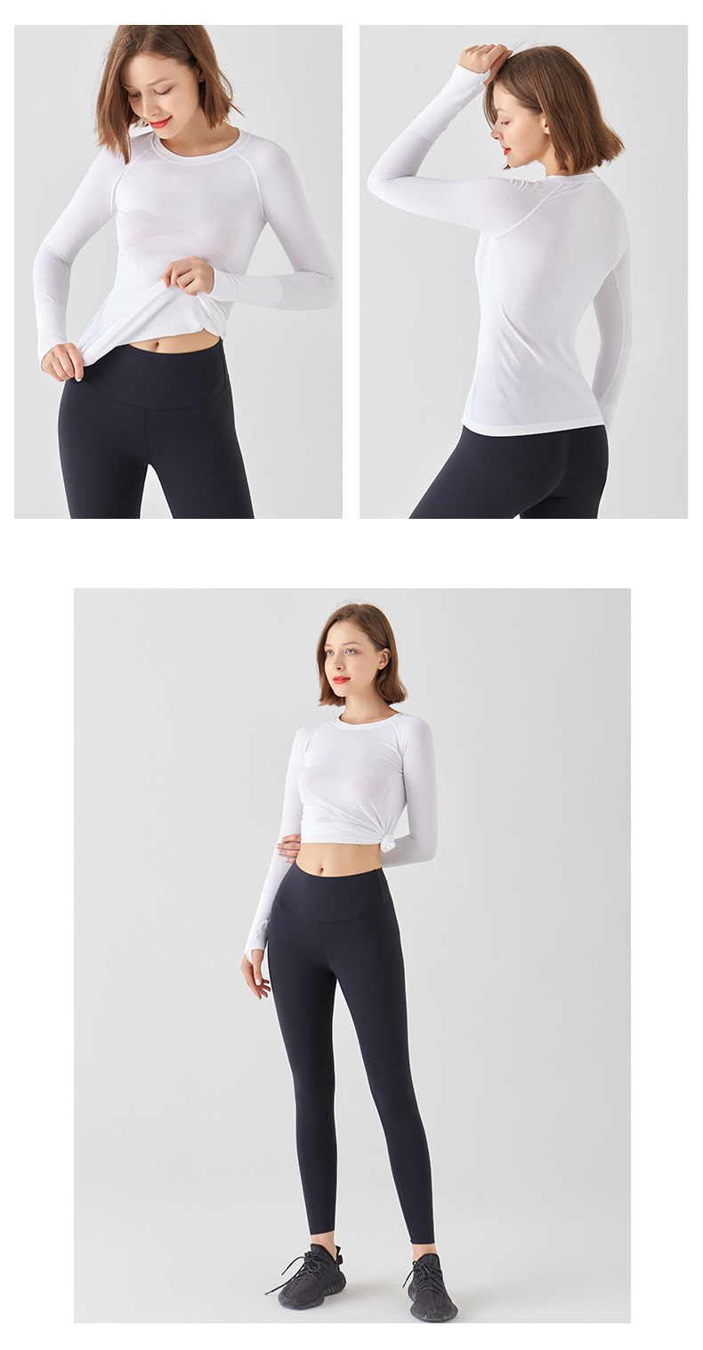 ヨガトップス、スポーツウェア、ラウンドネックTシャツ、長袖、スリムフィット、吸湿発散性、アウトドアサイクリング、ランニング、通気性、速乾性