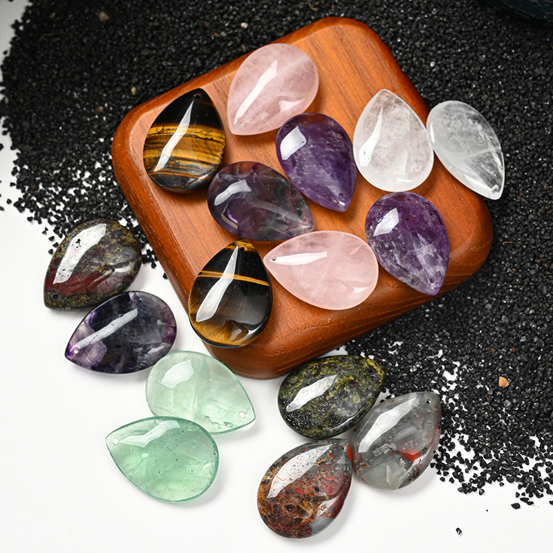 跨境热卖26*35mm大号水滴吊坠紫水晶虎眼石水滴吊坠diy耳环项链