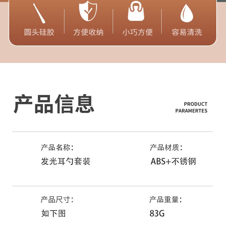 新商品の現物発光耳さじセット子供用の耳取りツール