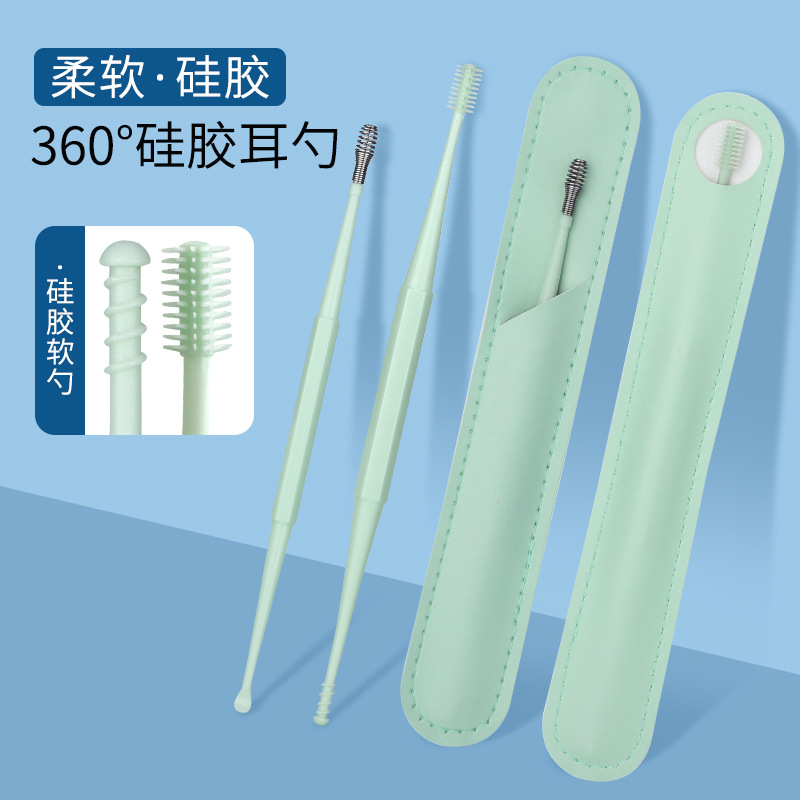 在庫ありの耳かきセット、シリコン耳かき、双頭耳かき、ソフトヘッドスパイラル耳かき、耳垢除去ツール