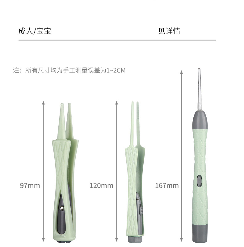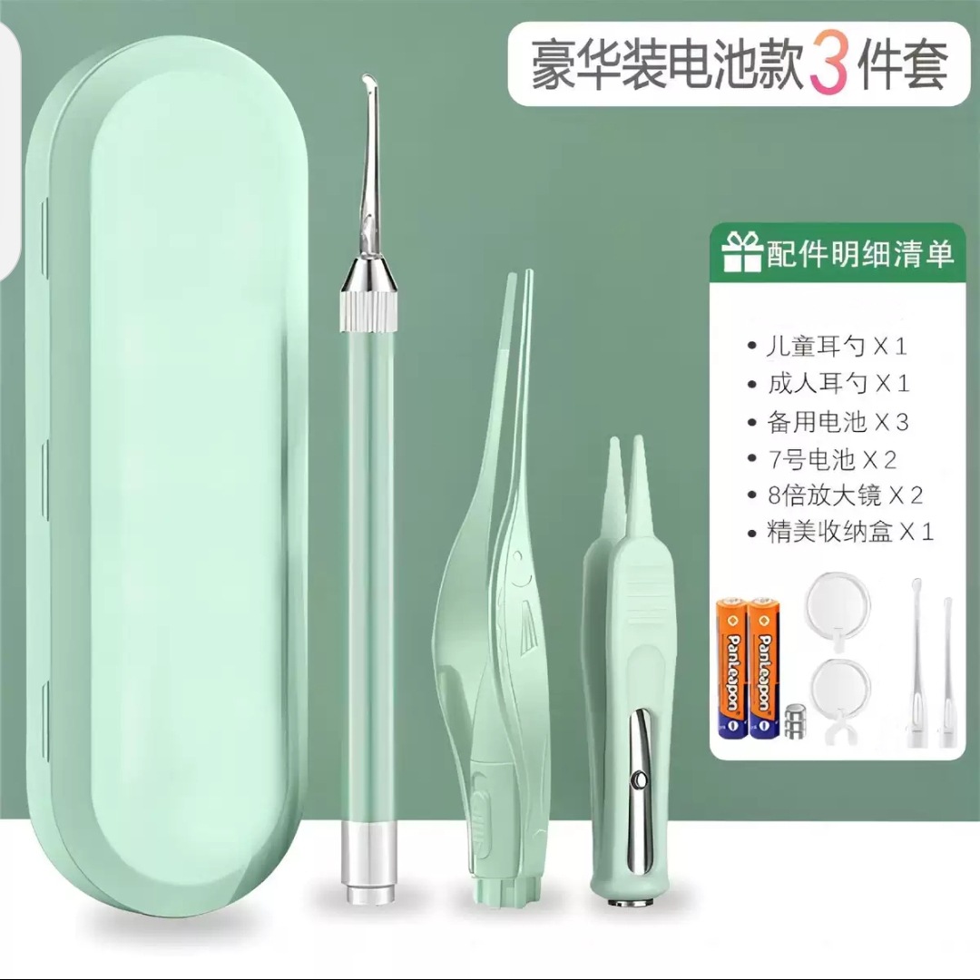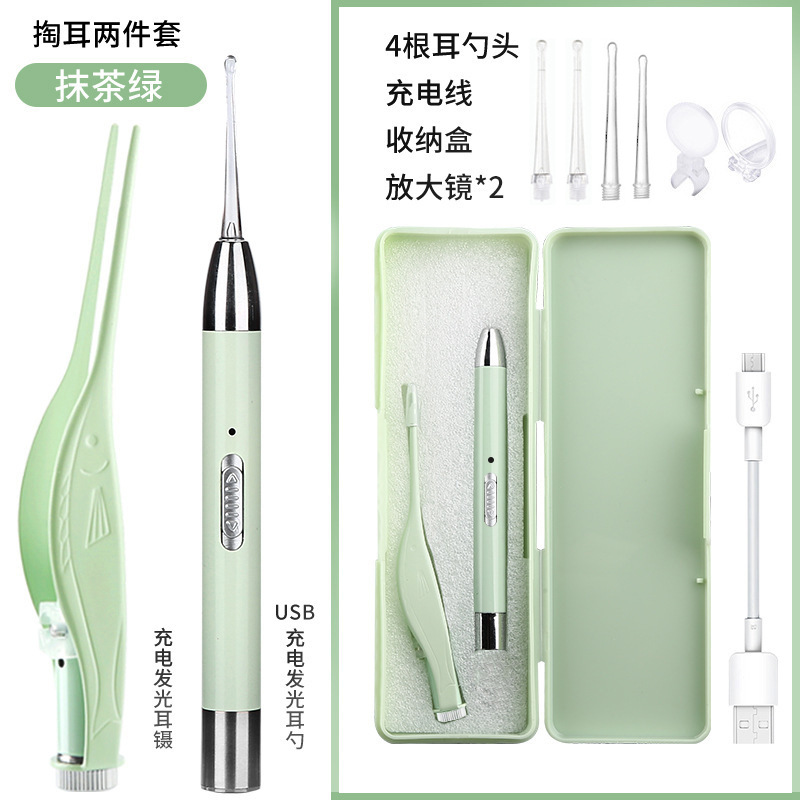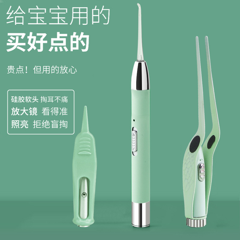 光る充電式イヤースプーンソフトヘッドビジュアルピンセットベビー耳アーティファクト安全セット子供用ライトバックル耳垢