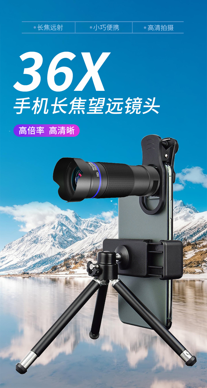 国境を越えた卸売 36 倍携帯電話望遠レンズ屋外 HD ハイパワー大視野釣りライブブロードキャスト単眼望遠鏡