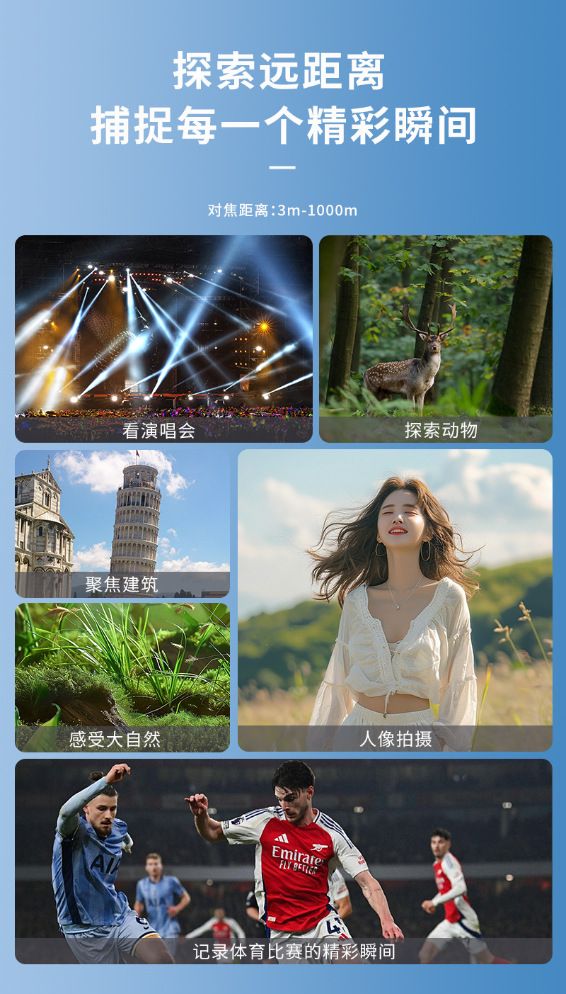 手机长焦外置镜头演唱会22倍高清望远镜户外手机拍照单筒金属长焦