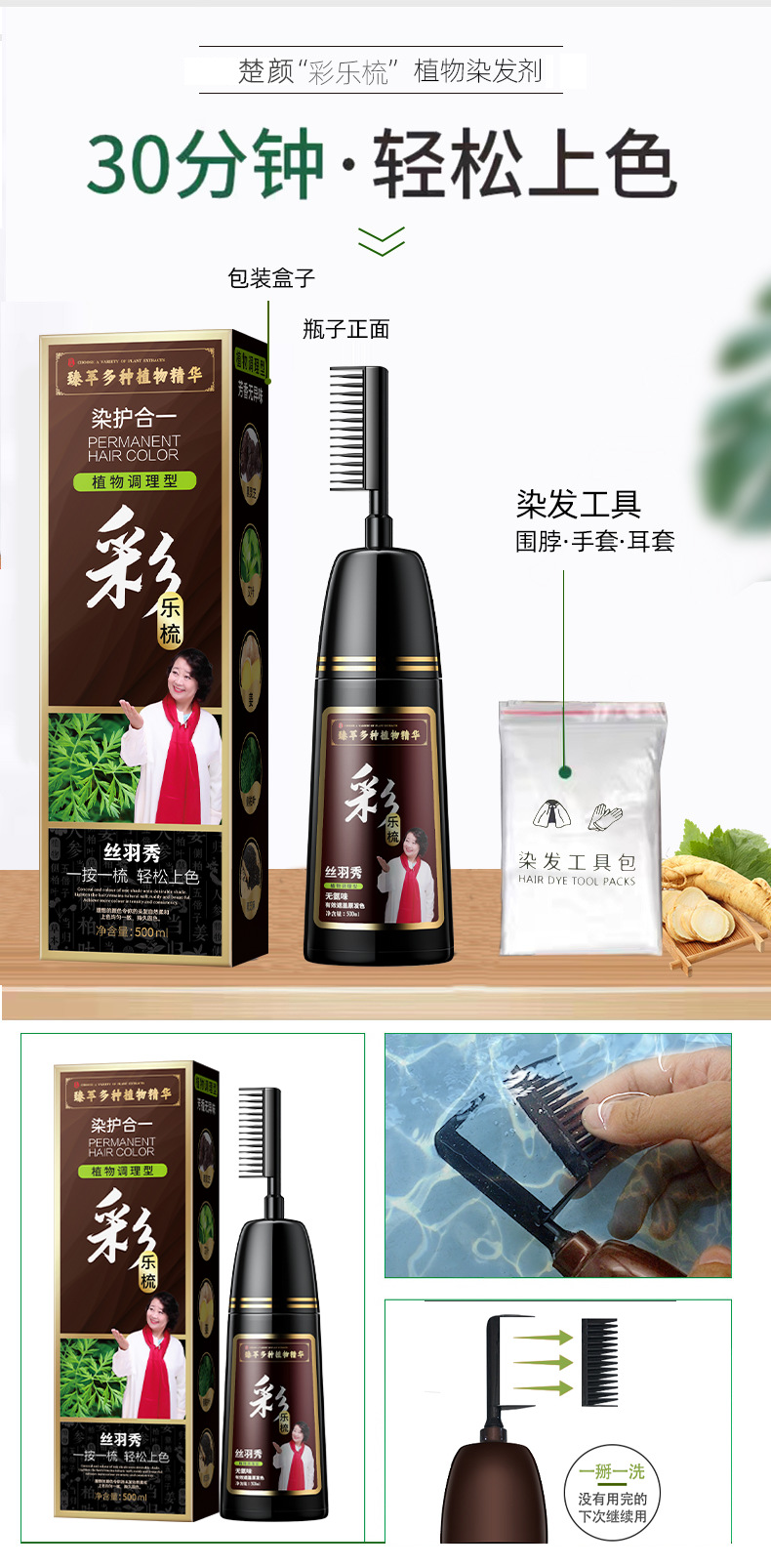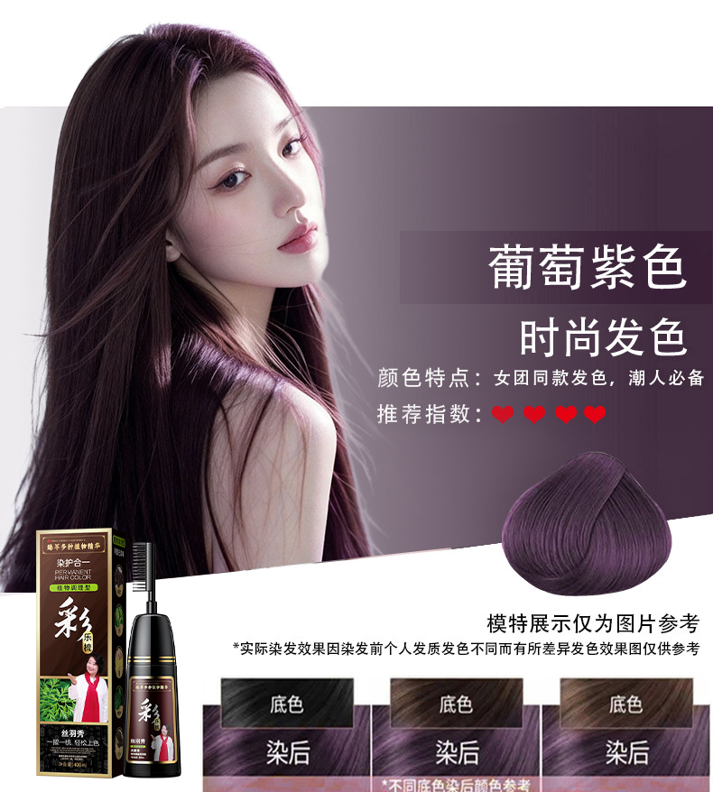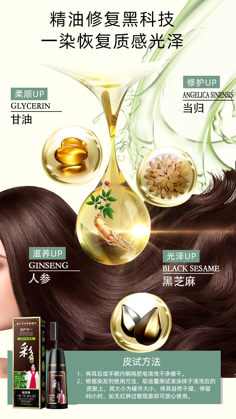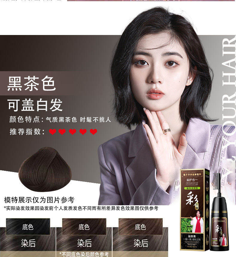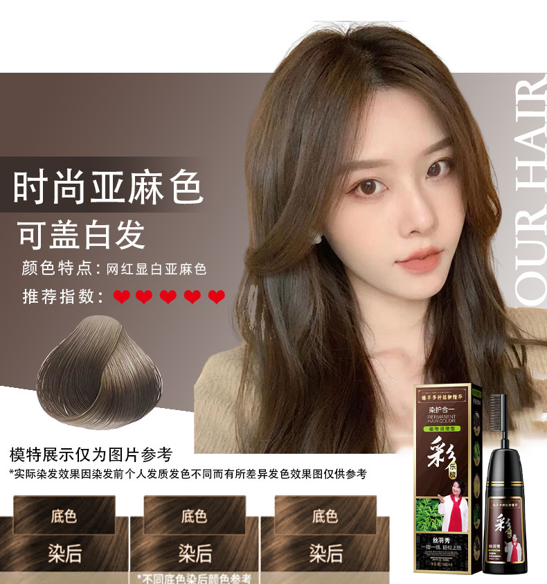丝羽秀含植物染发剂自己在家一梳彩染发膏盖白发源头批发厂家