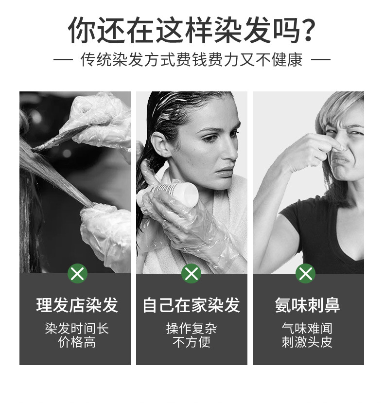 爆款绿袋果油染发剂植物袋装亲肤温和盖白发家用泡沫染发膏