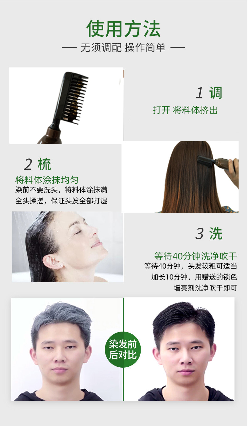 シルクフェザーショー Douyin 同色染毛剤 バブル染毛剤 カバー 白髪染めクリーム ワンウォッシュ カラー染毛剤 コーム ブラック