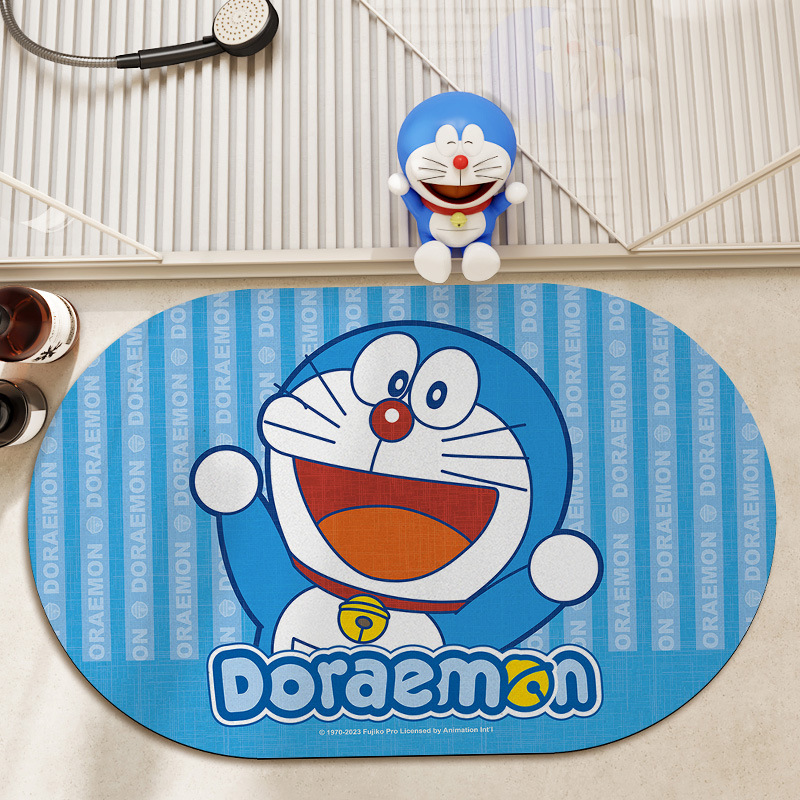 正版哆啦A梦科技绒加厚海绵浴室地垫强吸水速干脚垫橡胶底防滑垫