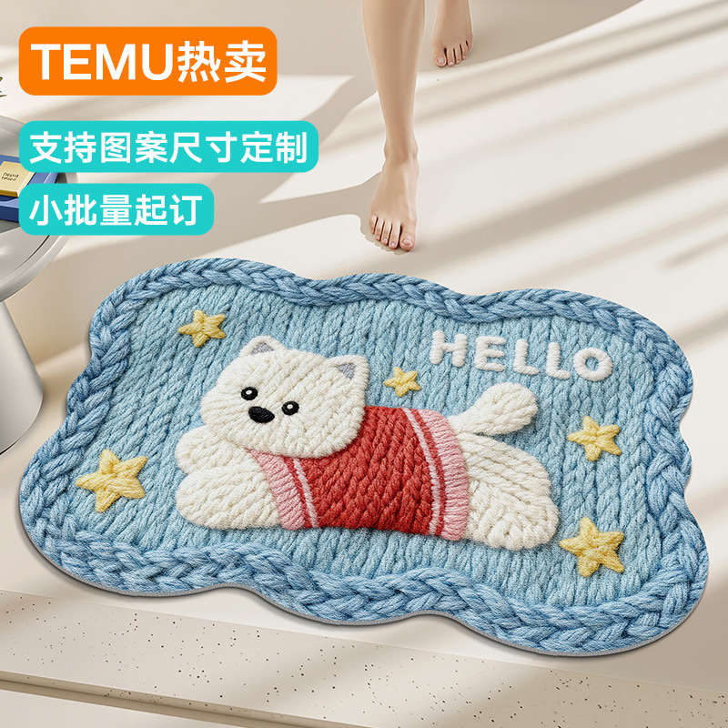 temu科技绒3D卡通仿毛线地垫浴室厕所卫生间吸水速干浴室防滑脚垫