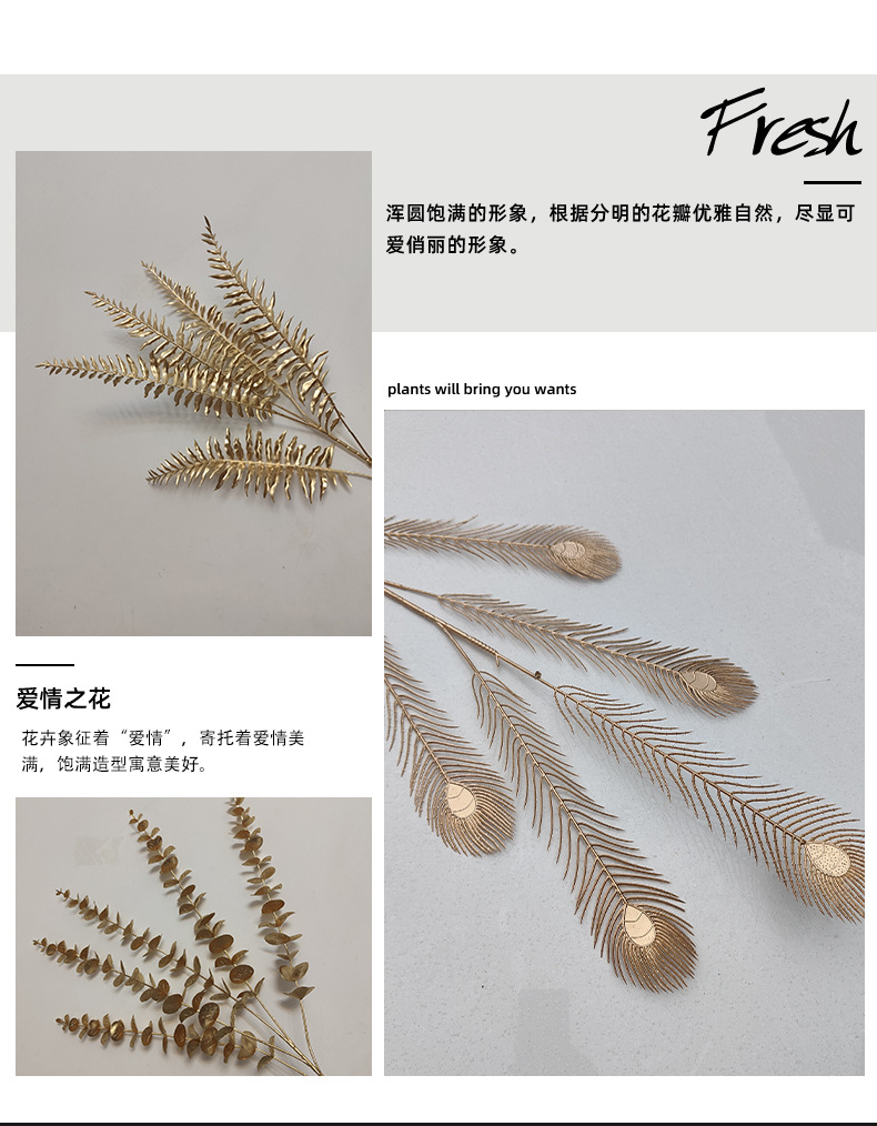 金色の造花、人工ユーカリ、小型ペルシャユーカリ、銅貨扇葉、元宝葉、楓の葉の卸売