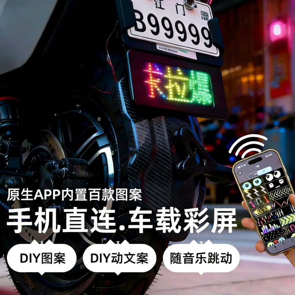 车载彩屏手机控制电动车像素LED显示屏可DIY电摩托车恶魔眼屏幕
