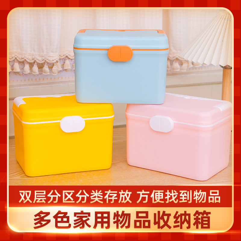 家庭用医薬箱小医箱多機能手提げプラスチック箱学生寮整理収納ボックス工具箱二重