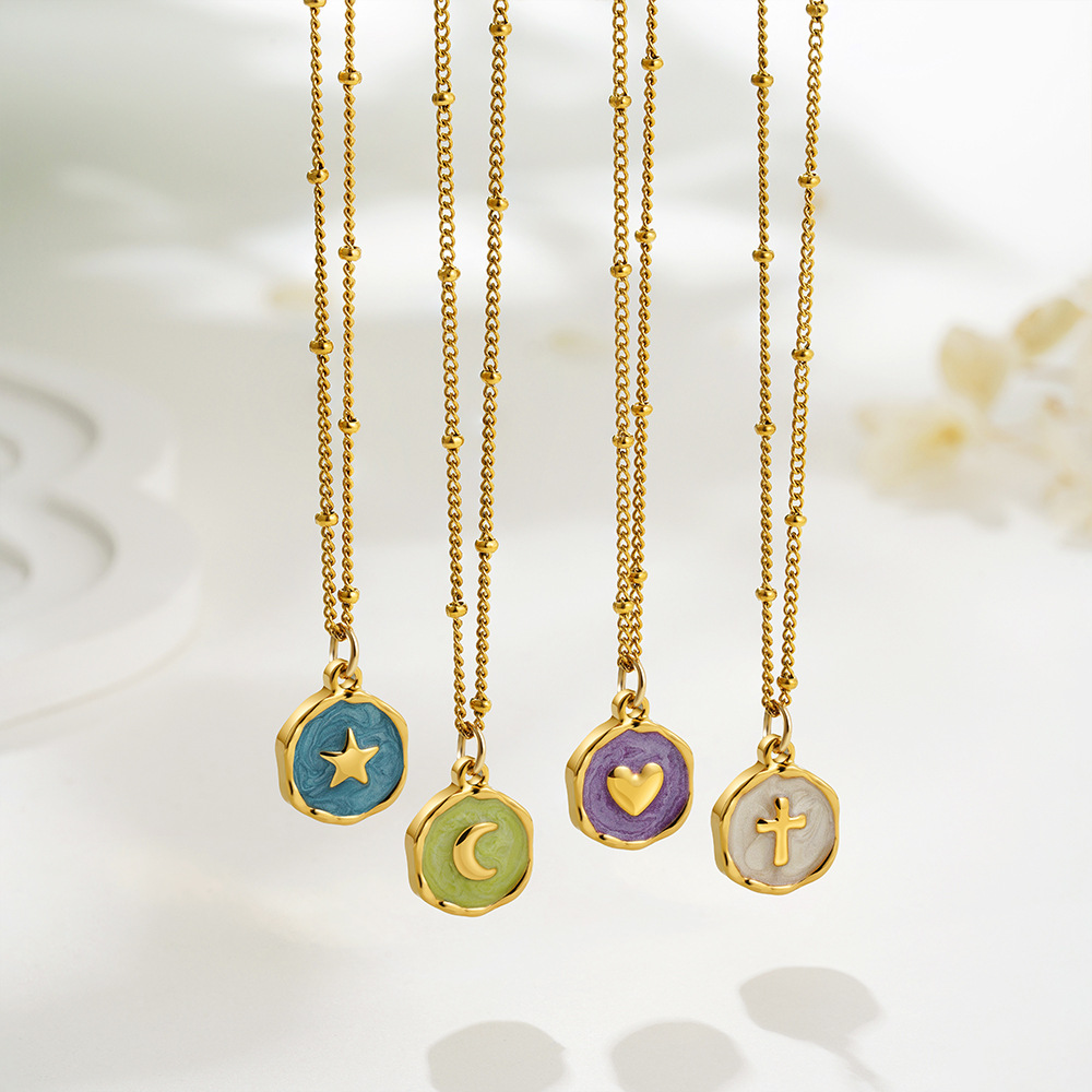 国境を越えた欧米の人気新商品シンプルなネックレスクロス愛星月滴油ペンダントネックレス女性ネックレス
