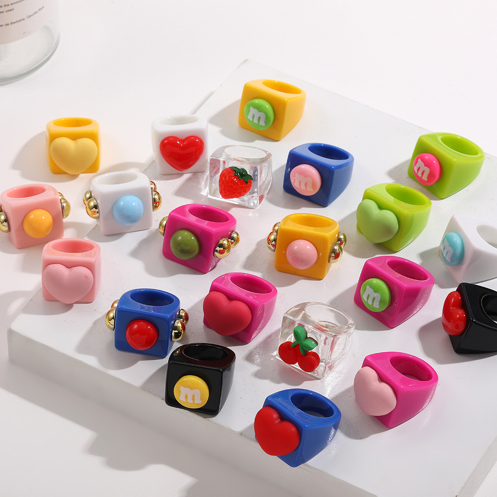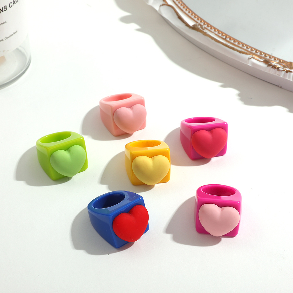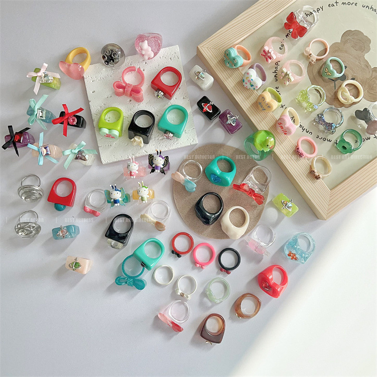 国境を越えた欧米の愛の樹脂の指輪はDIYの甘くてかわいい少女の風の潮流が色の多彩な人差し指の輪を落とさないことができます。