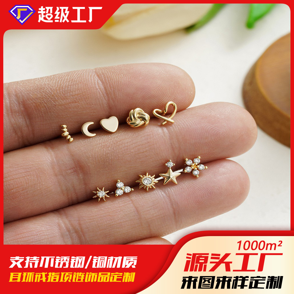欧米の国境を越えたステンレス18k金穿刺片耳小衆はジルコン耳骨釘直棒ねじ耳飾りを組み合わせた