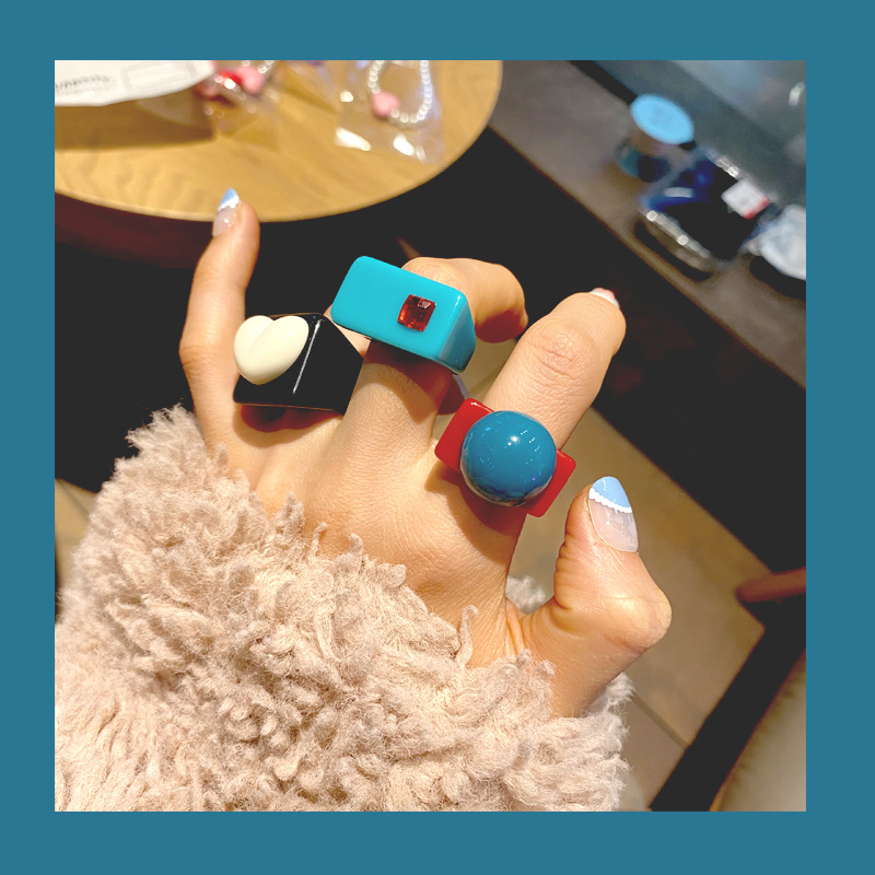 韓国の東大門でよく売れているアクリル樹脂の指輪です。
