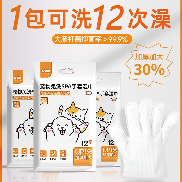 宠物免洗手套猫咪狗狗湿巾免洗澡干洗清洁用品除臭湿纸巾