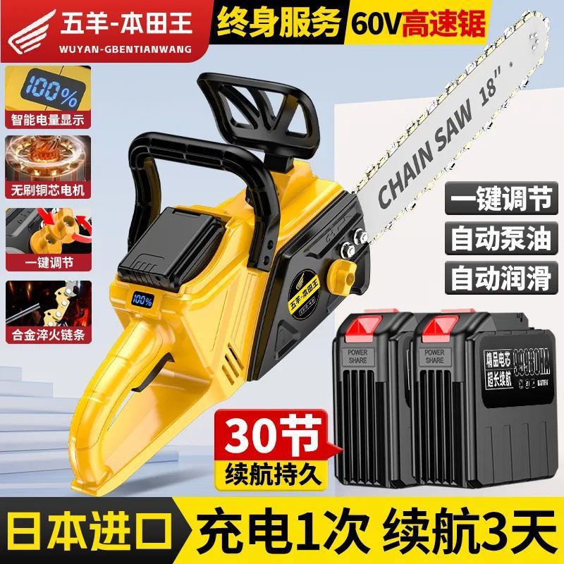 新款进口五羊大功率锂电锯纯铜无刷电机充电式家用户外伐木锯