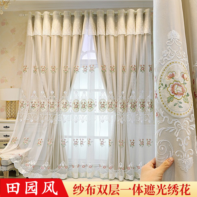 完成品卸売りカーテン田園新型客間高級大気カーテン布糸一体二重遮光寝室