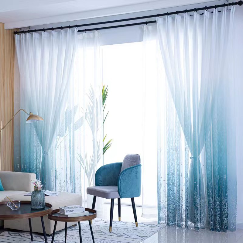 新型遮光カーテン布寝室北欧シンプル客間バルコニー大気二重刺繍窓糸が一体に着地した