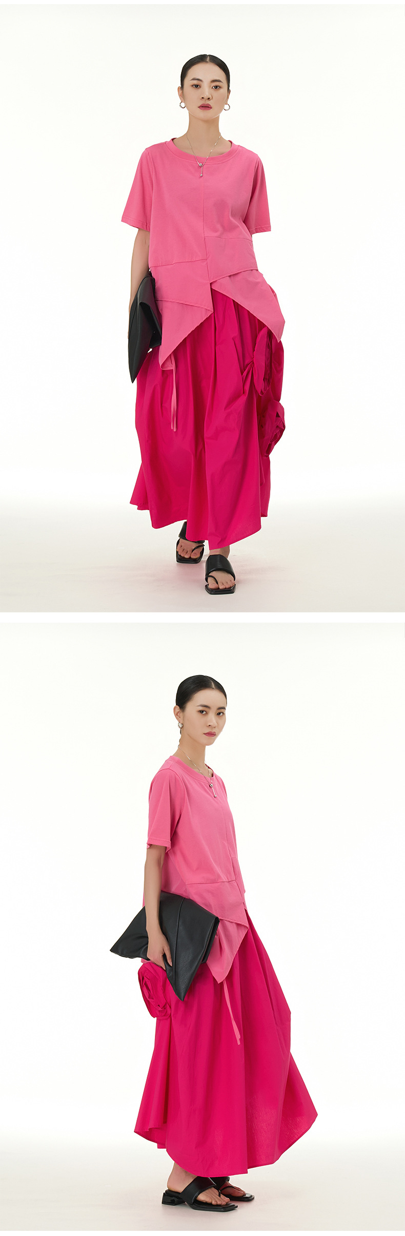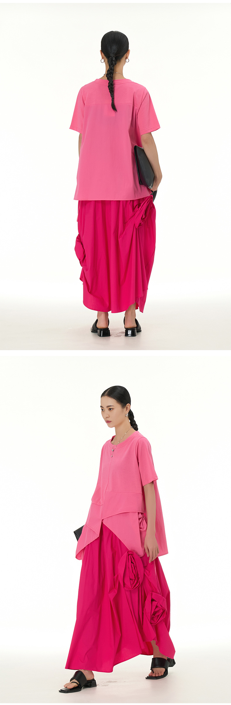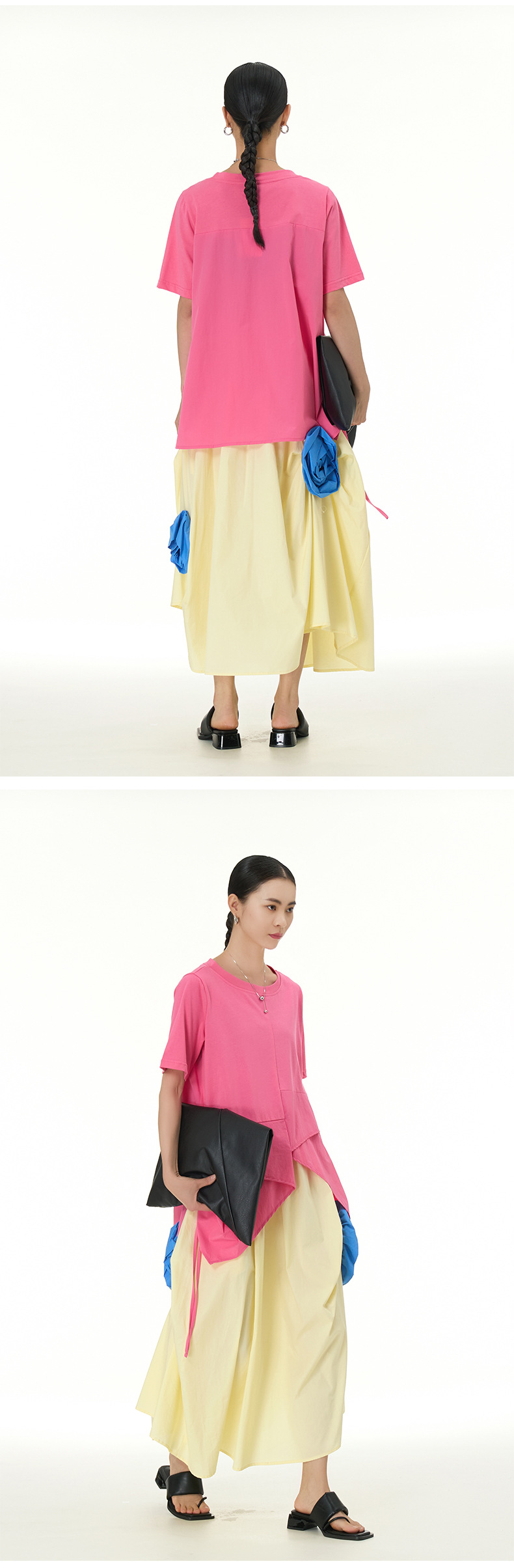 2025春の新型の大きいサイズの婦人服は不規則に色のデザインの半身のスカートにぶつかります。