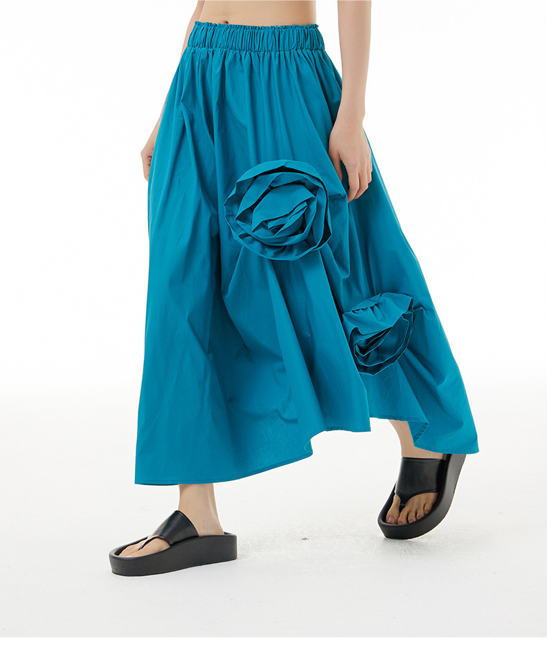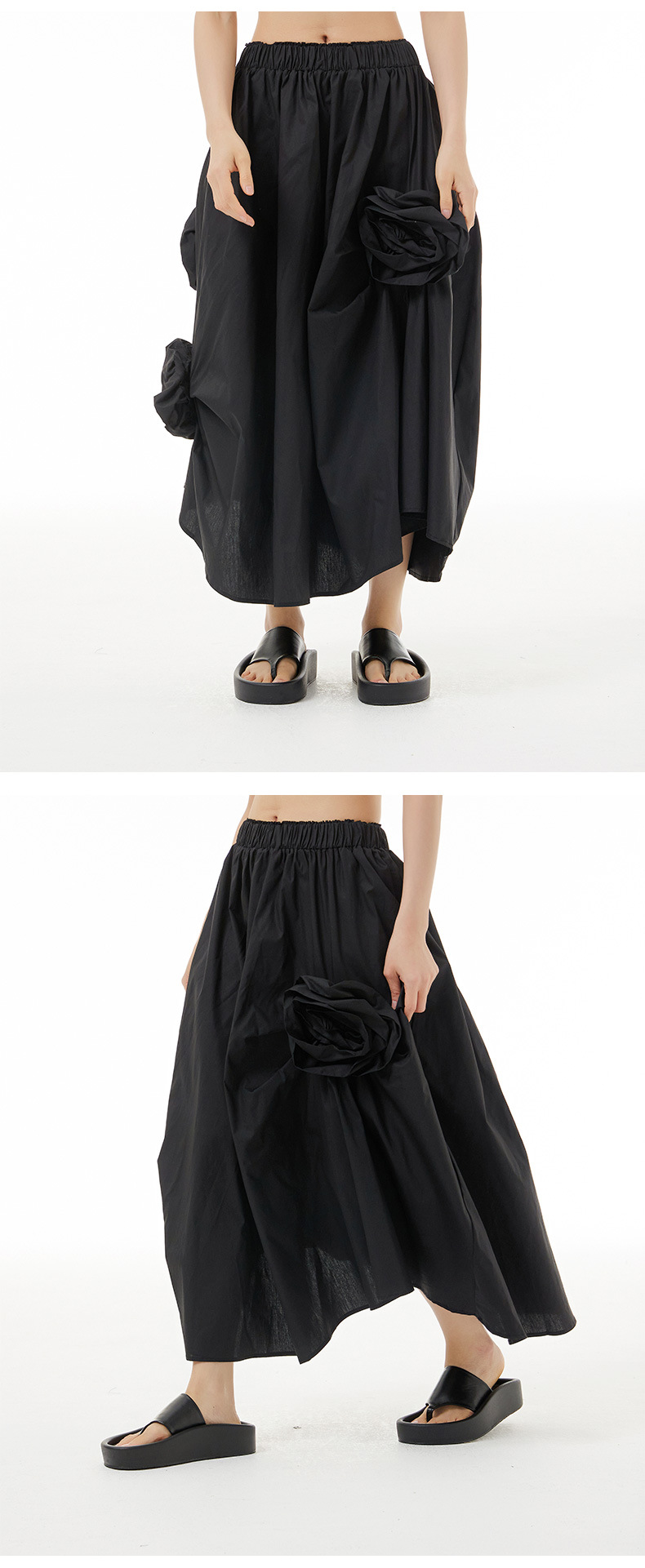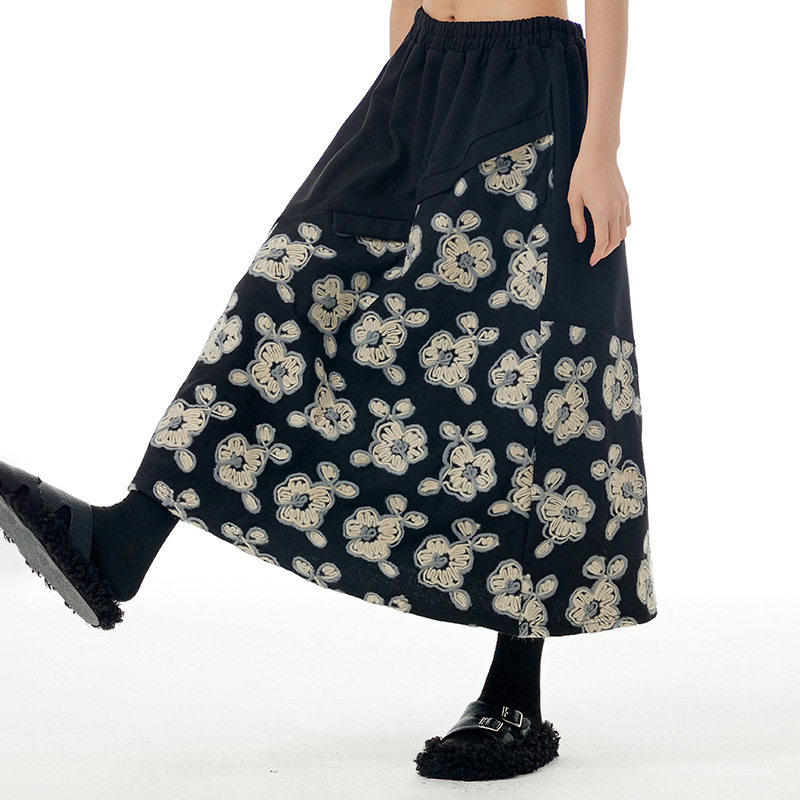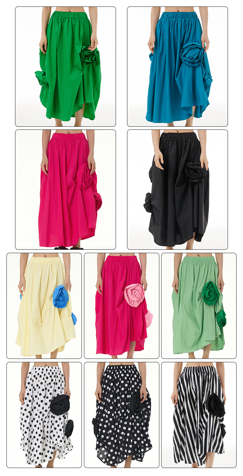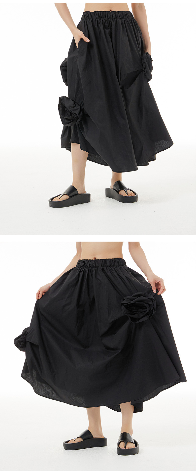 立体的な花柄のスカート、着痩せ効果のある花飾り付きスカート、2025年秋の新作デザイン、イレギュラーなスカート3351
