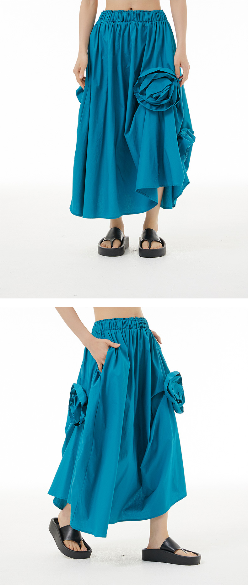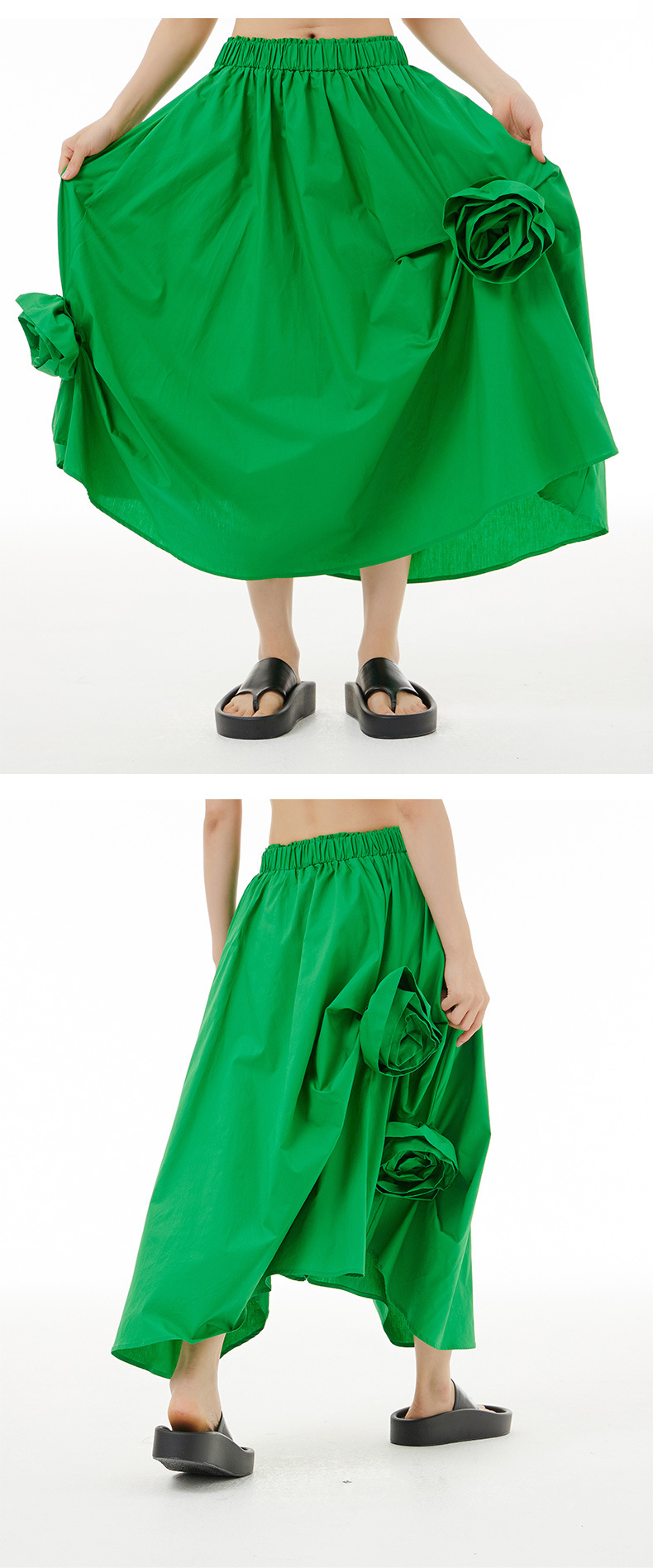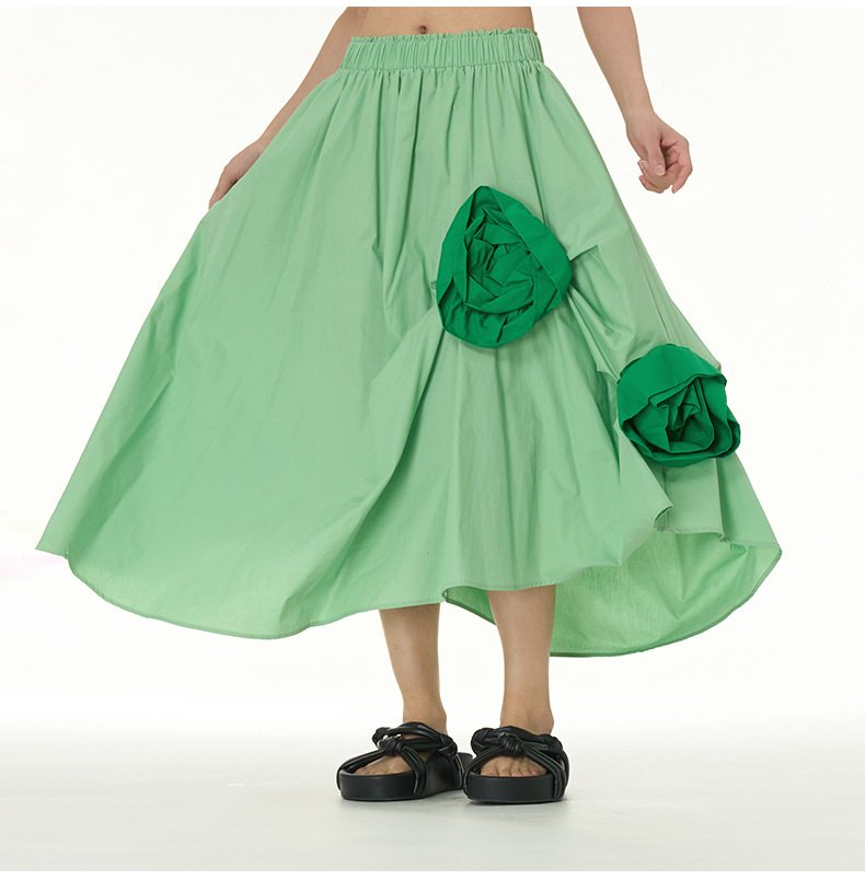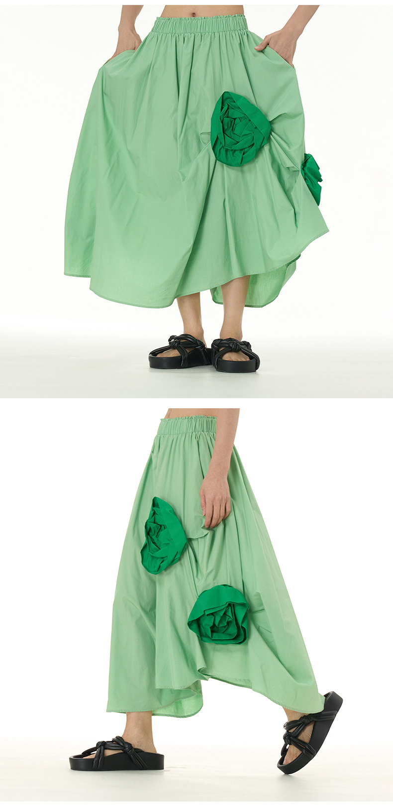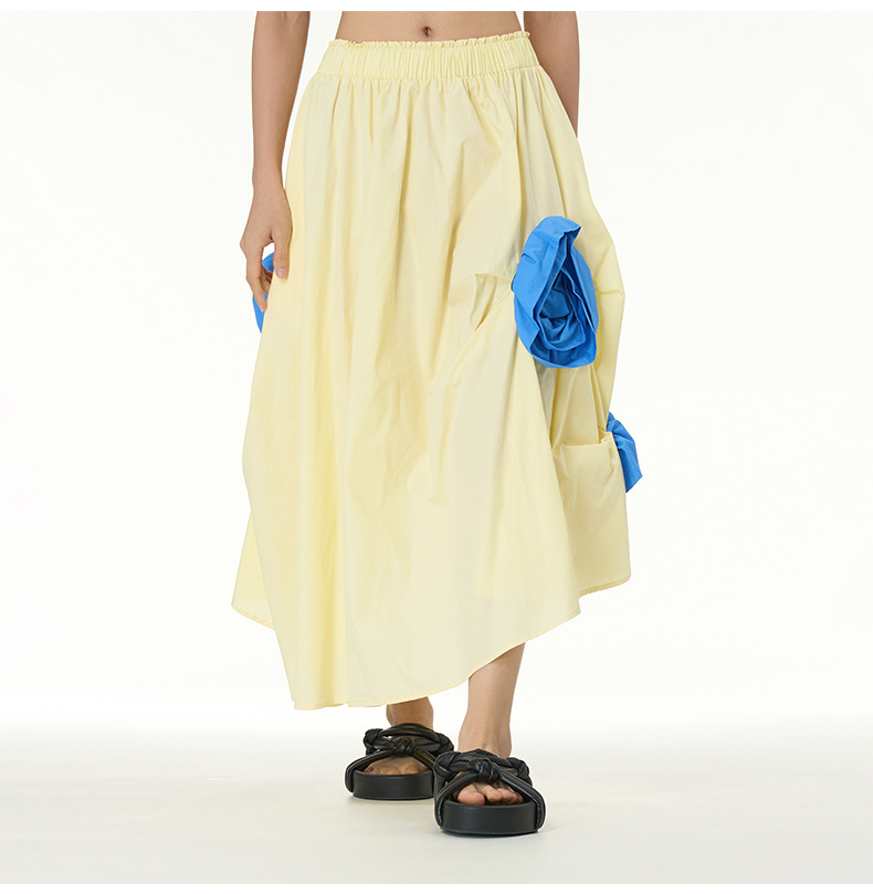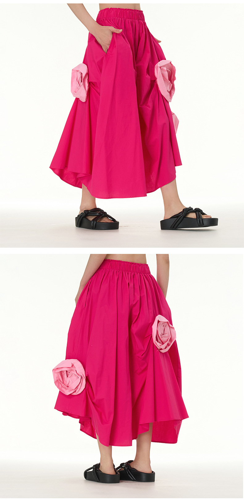 立体的な花柄のスカート、着痩せ効果のある花飾り付きスカート、2025年秋の新作デザイン、イレギュラーなスカート3351
