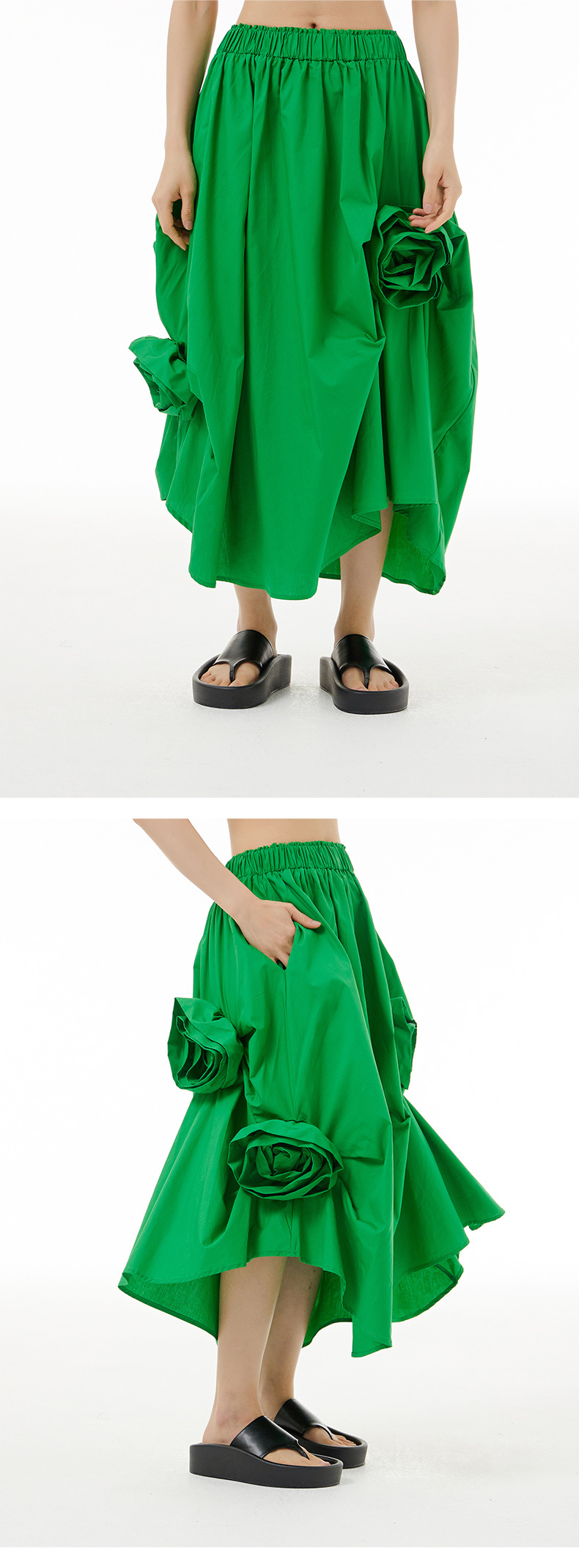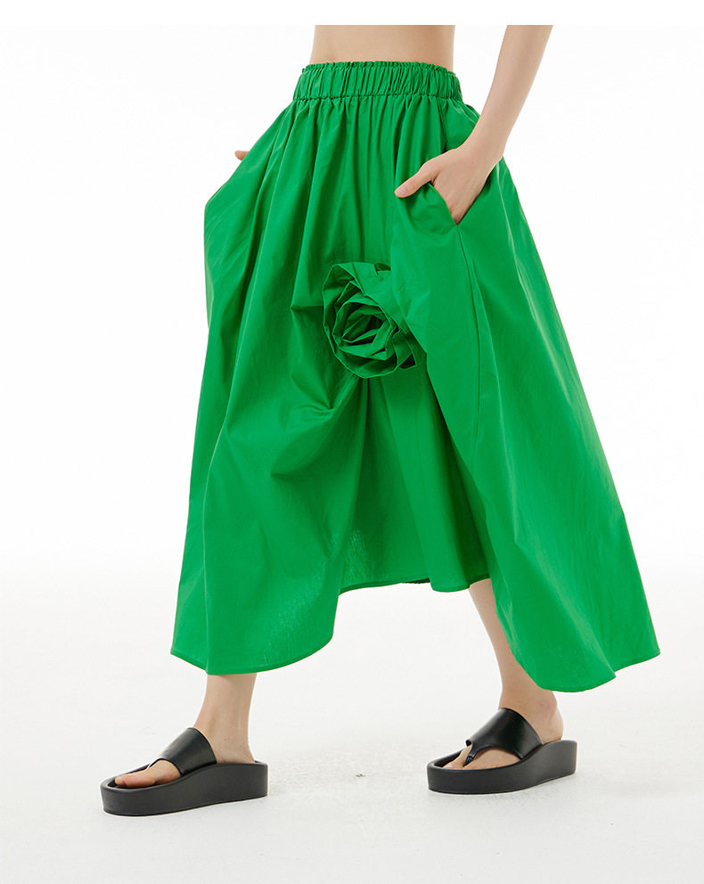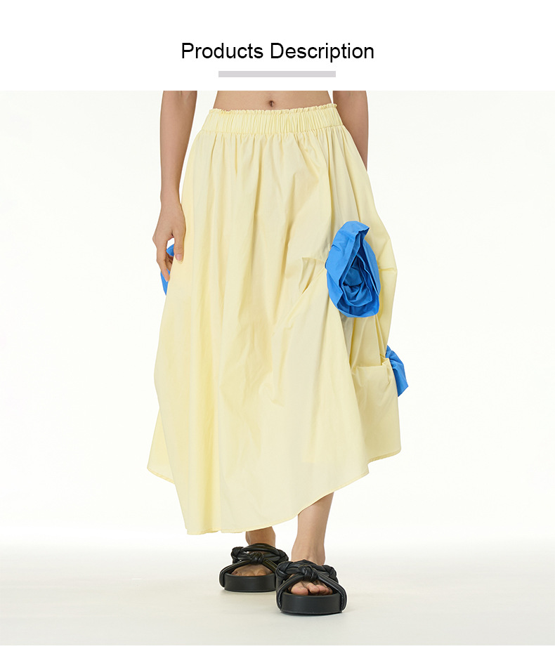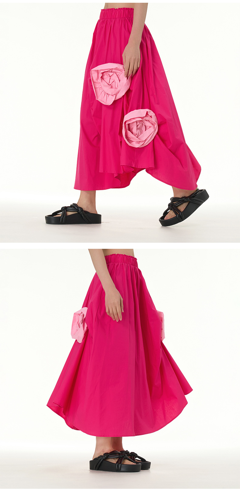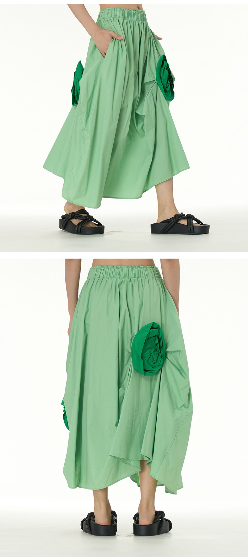 立体的な花柄のスカート、着痩せ効果のある花飾り付きスカート、2025年秋の新作デザイン、イレギュラーなスカート3351