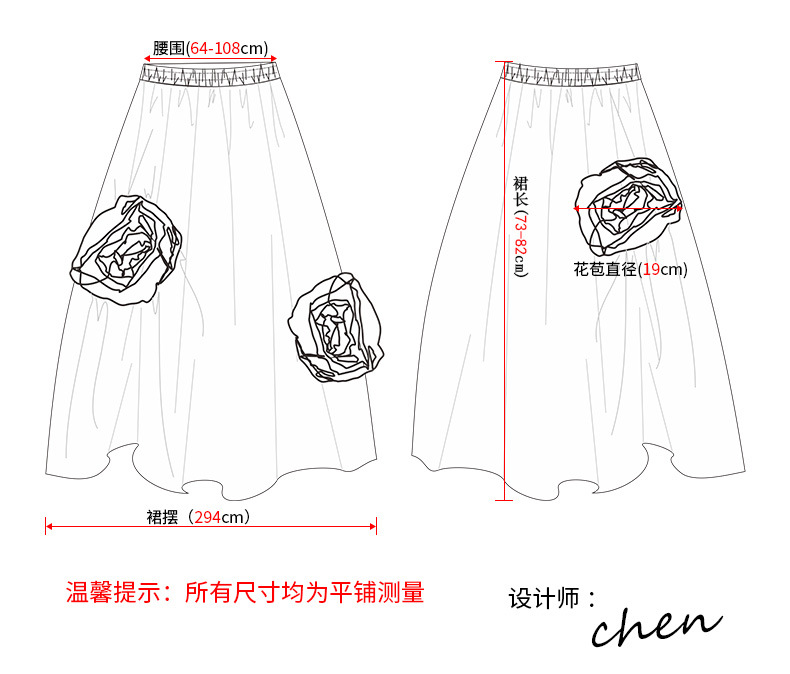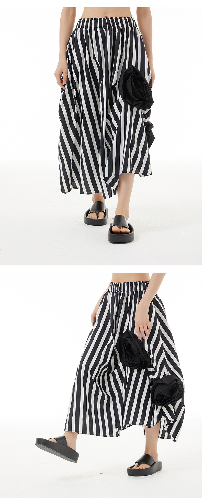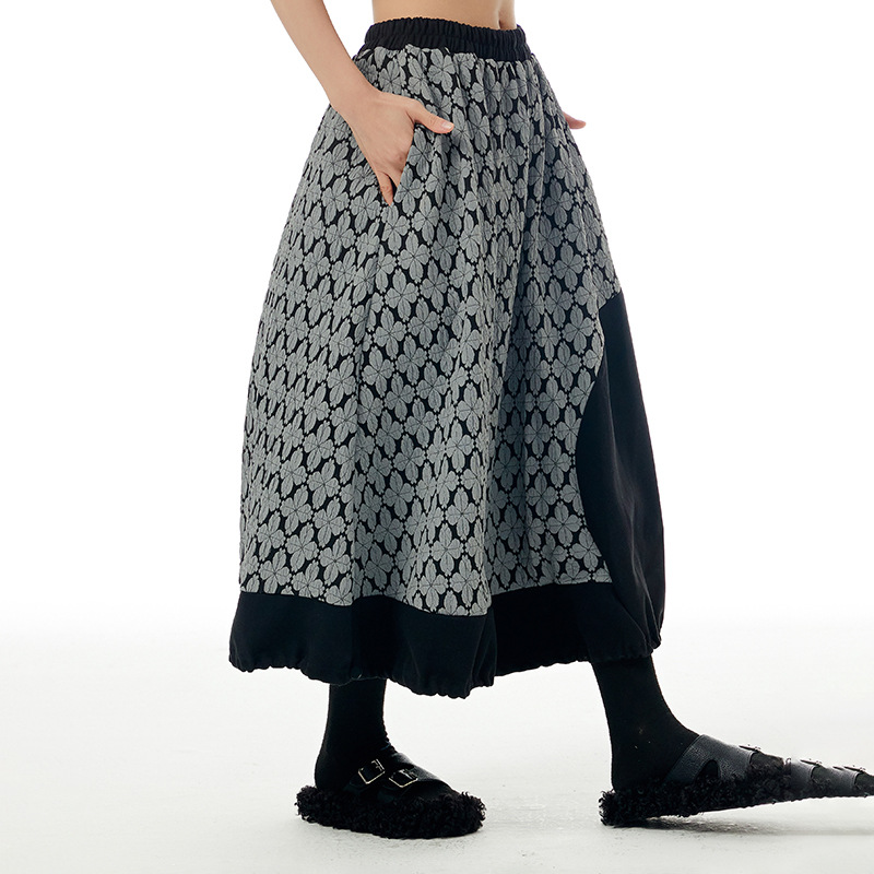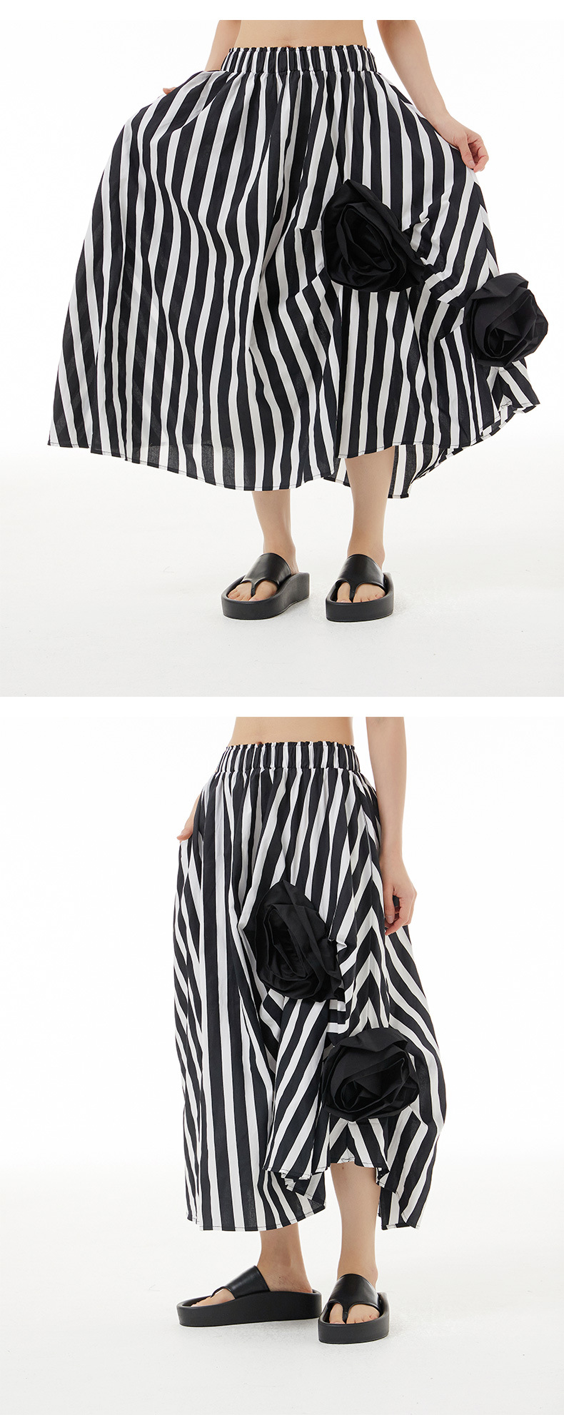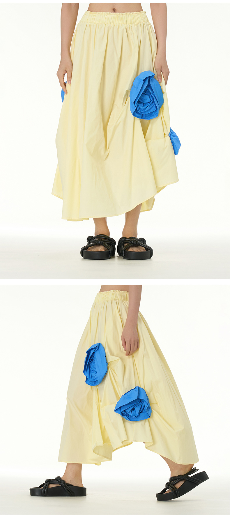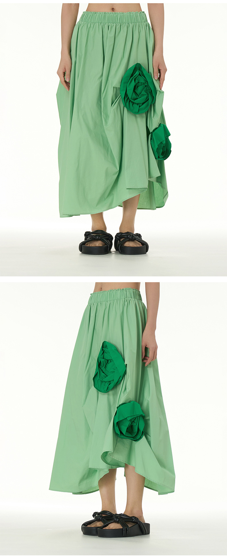 立体的な花柄のスカート、着痩せ効果のある花飾り付きスカート、2025年秋の新作デザイン、イレギュラーなスカート3351