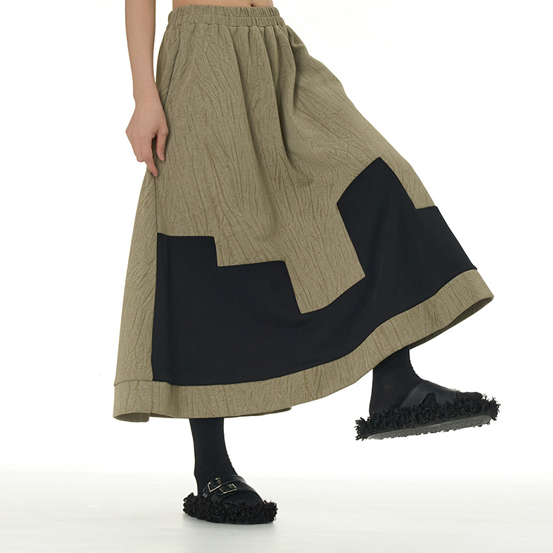 日系2025春の新型の大きいサイズの婦人服の幾何学的なつなぎ合わせのスカートはゆったりしていて痩せています。