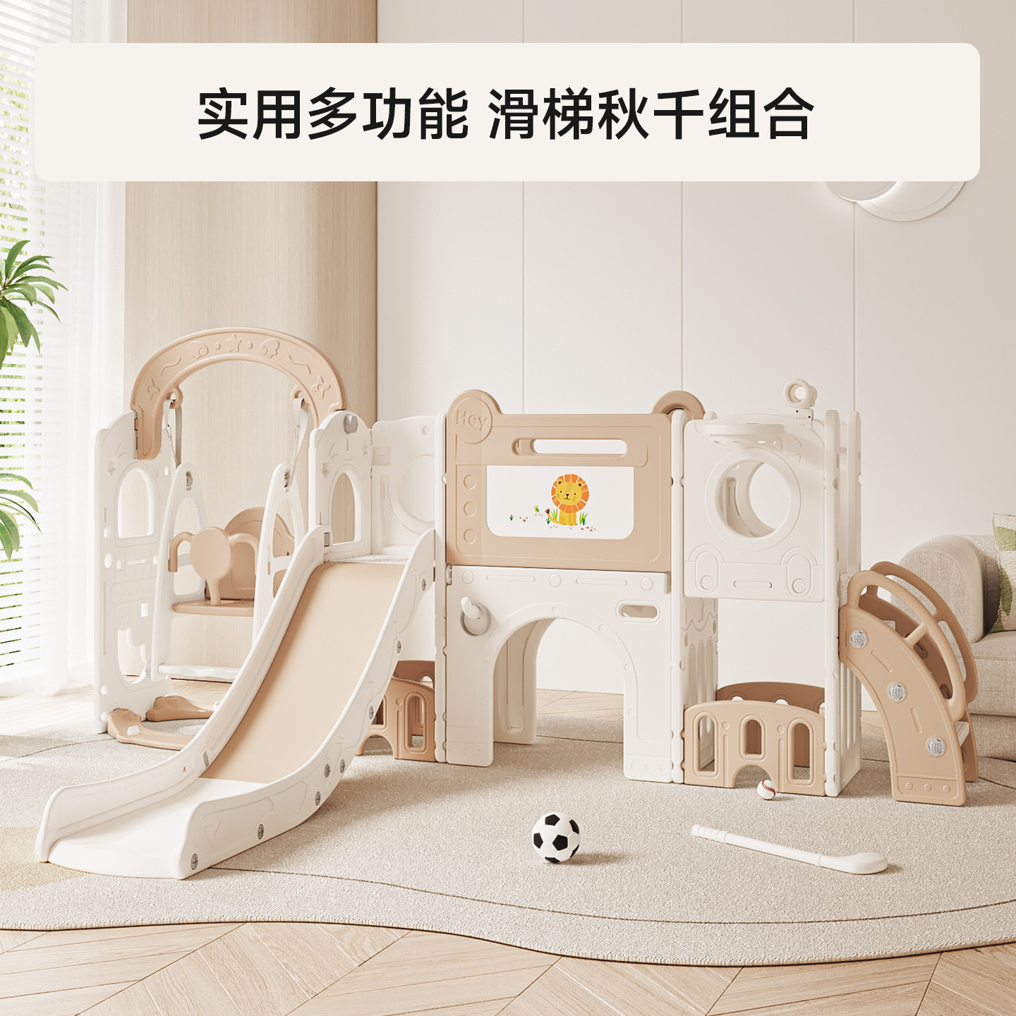 儿童滑滑梯室内家用宝宝滑梯秋千过道组合多功能玩具家庭游乐场