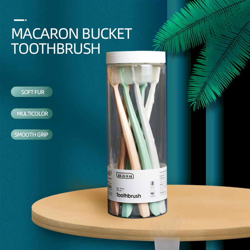 国境を越えた健康ブランドのマカロンの桶の広い頭の筒は8本の日本式の柔らかい毛の歯ブラシを入れて、成人の携帯メーカーの卸売りを保護します。
