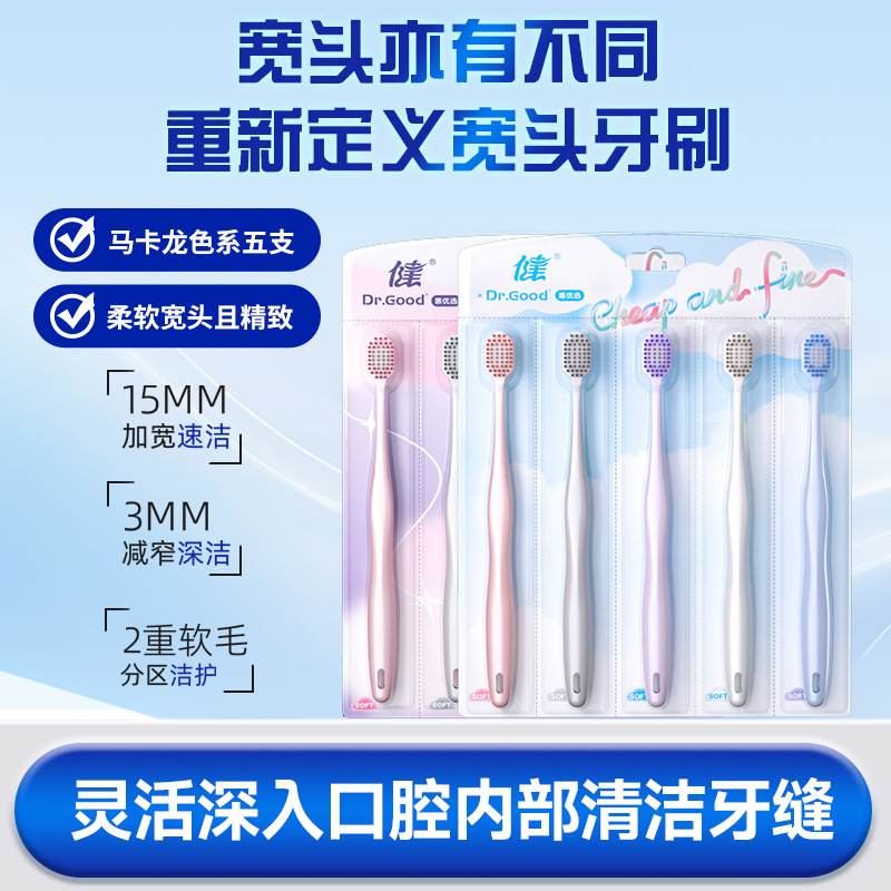 健牌儿童牙刷软毛高级成人宽头牙刷家庭装5支商超男女同款情侣