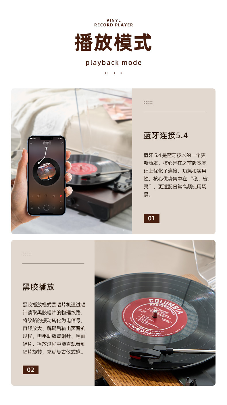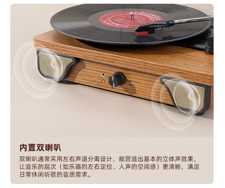 多功能黑胶唱片机复古留声机蓝牙音响独立音腔客厅氛围LP摆件