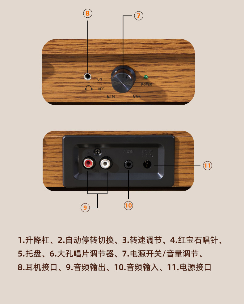 跨境复古黑胶唱片机留声机分体式无源蓝牙HIFI音响家用送礼LP唱机