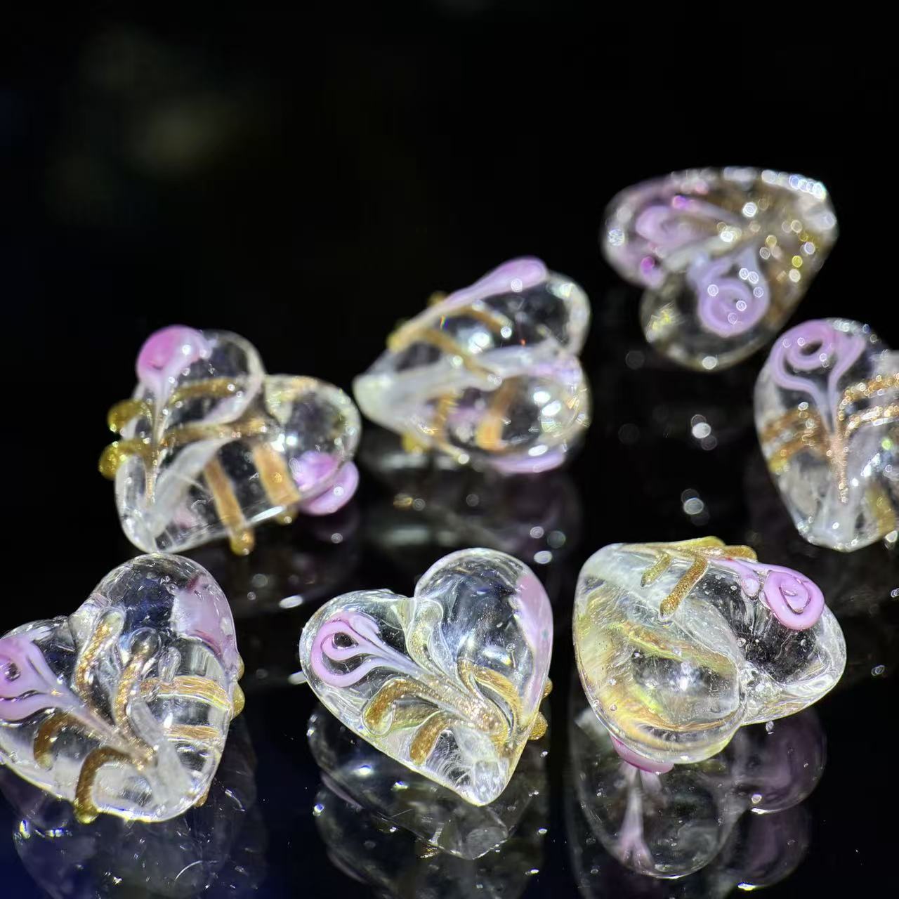 复古玫瑰金箔爱心方块琉璃串珠DIY手工饰品耳环手链项链配件材料