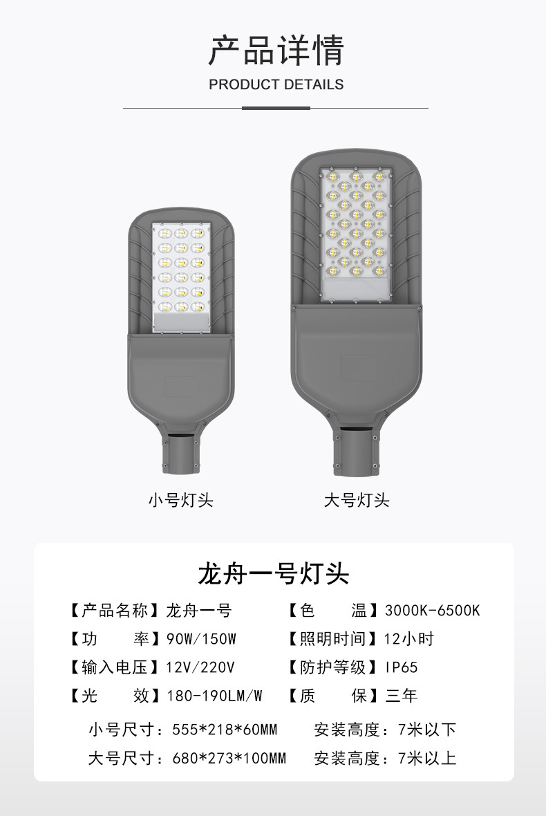 新型6メートル龍舟1号太陽光路灯頭工事代金LEDモジュール屋外照明灯現物卸売り
