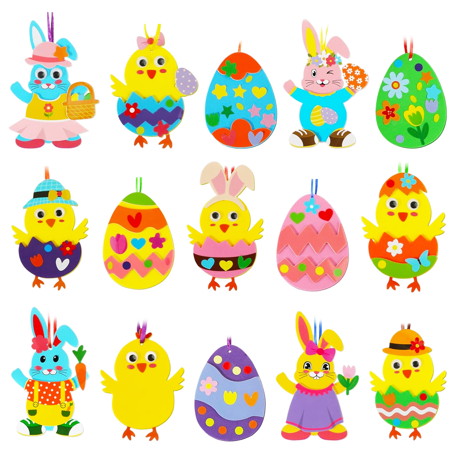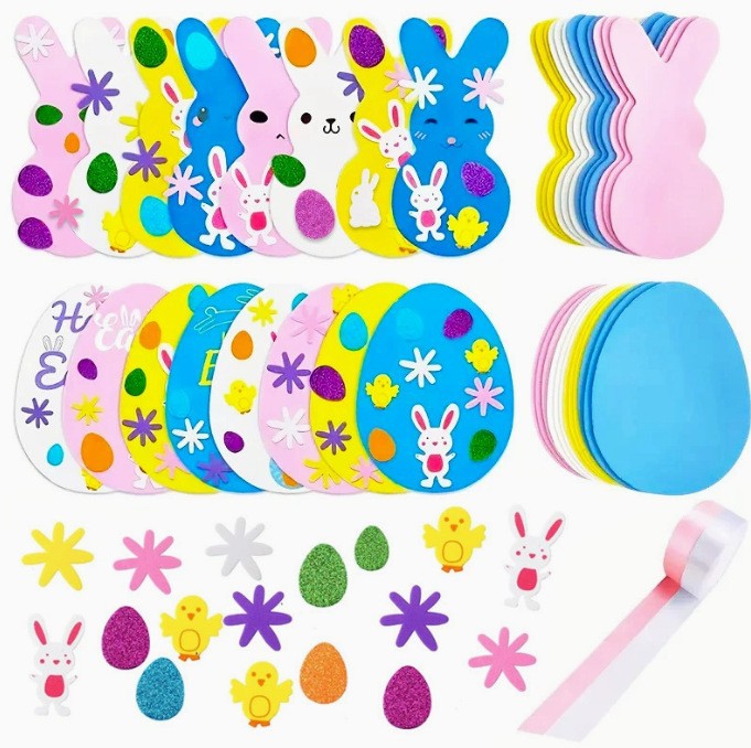 复活节手工艺套件 DIY泡沫贴纸套装 复活节兔子小鸡彩色EVA工艺套